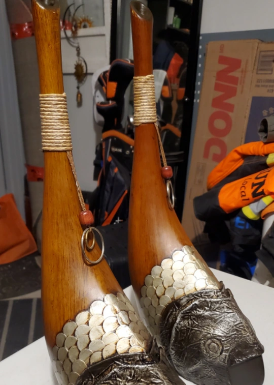 Can be used plain as statues or as vases, can add something into hole in the top such as a feather, pampass grass, flowers etc.
