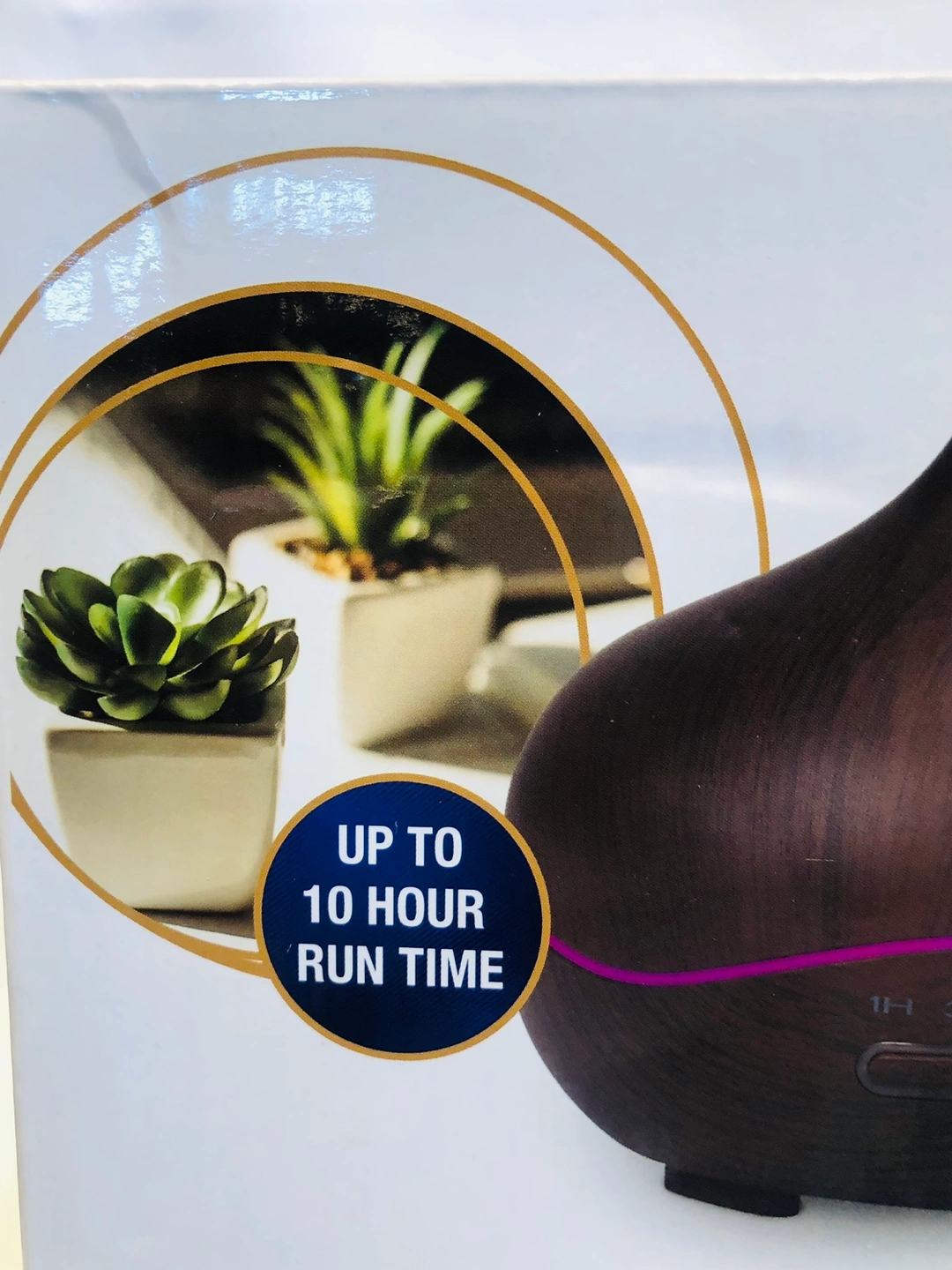 Create a calming atmosphere with your favourite fragrance. Choose the ideal light from 7 calming colours. Qperates quietly and has 4 timer settings. Diffuser will automatically shut off when water runs out. Accessories include: AC adapter, instruction manual, water measuring cup.