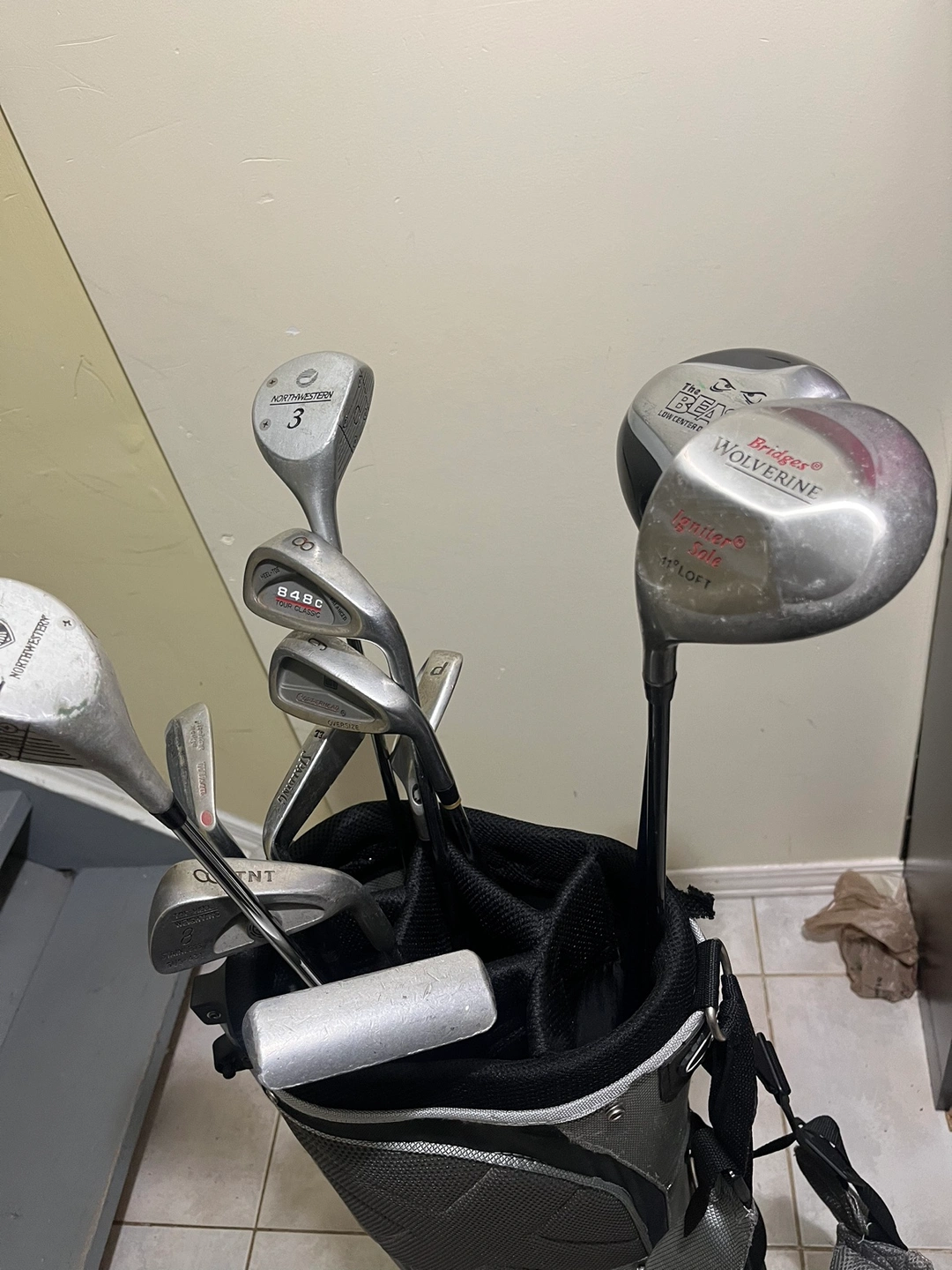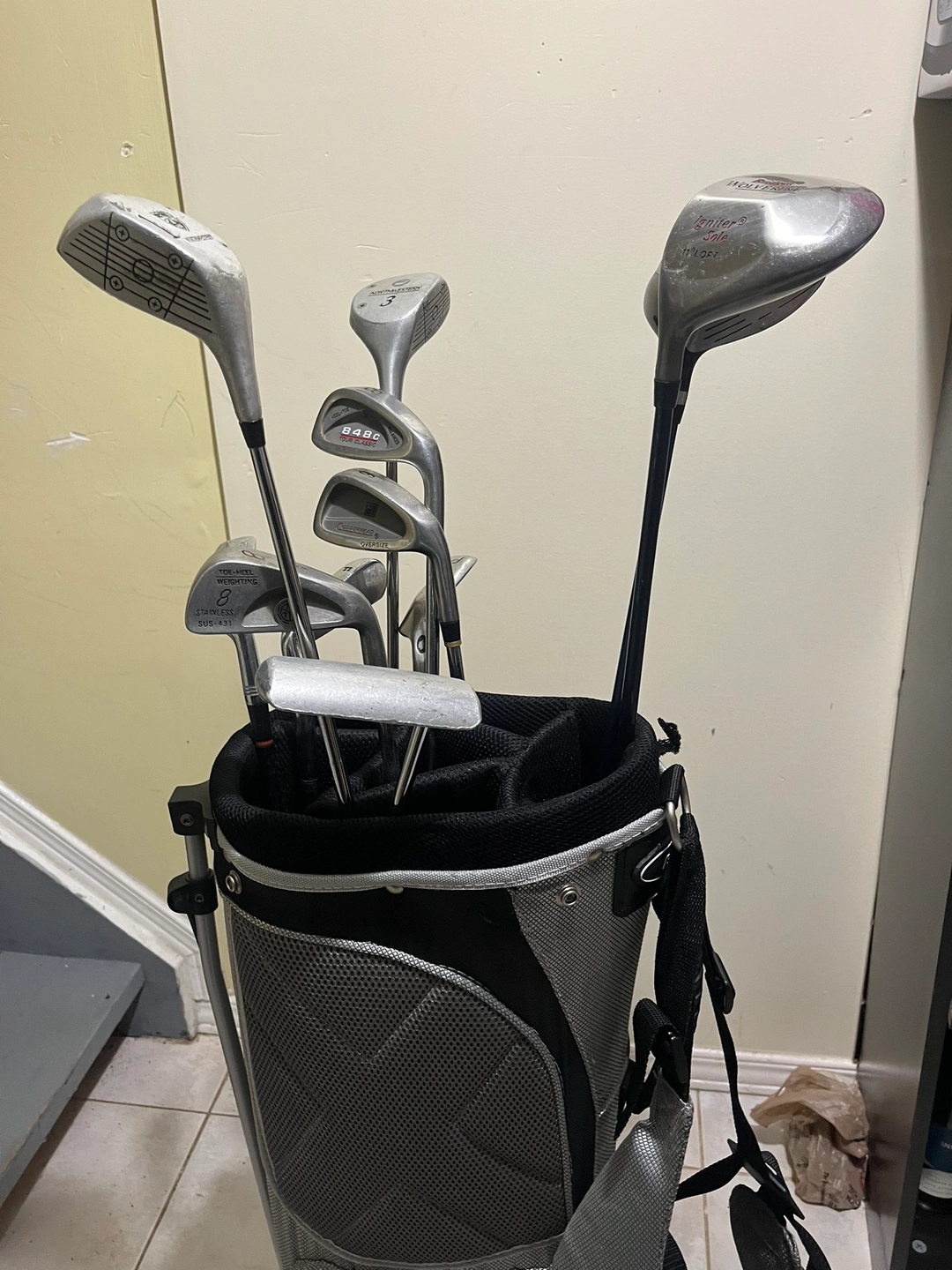Golf clubs and golf bag