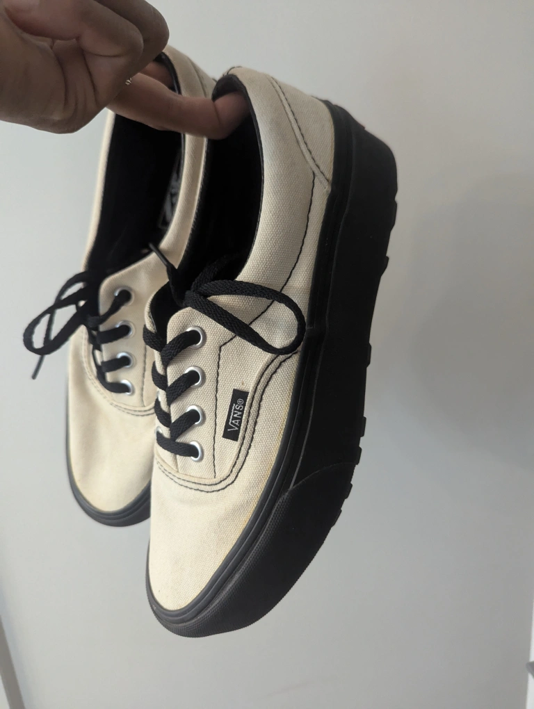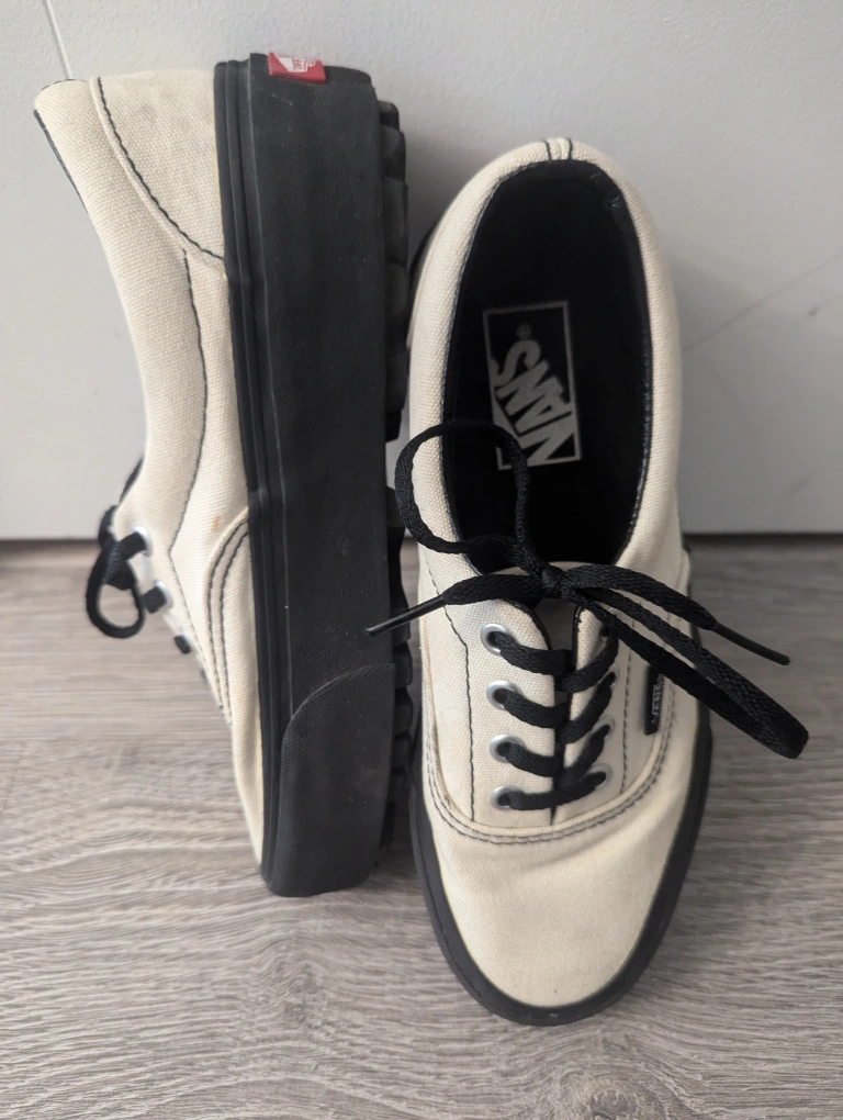 Vans Era Lug Platform Shoes Women's 7.5 White Black Canvas Chunky Low Sneakers