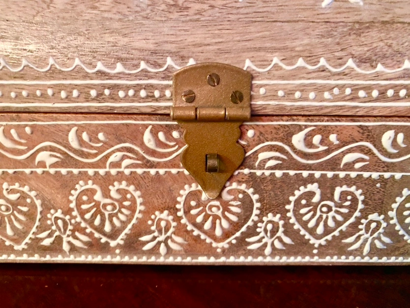 Handpainted Indian Wooden Keepsake Box w/ Latch