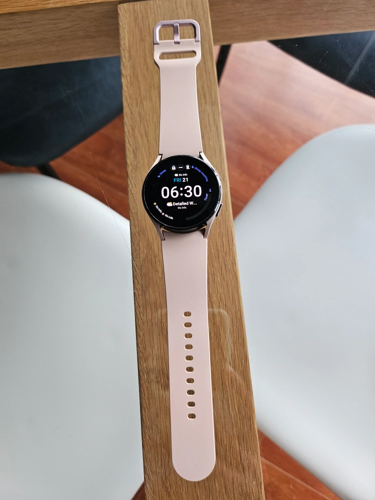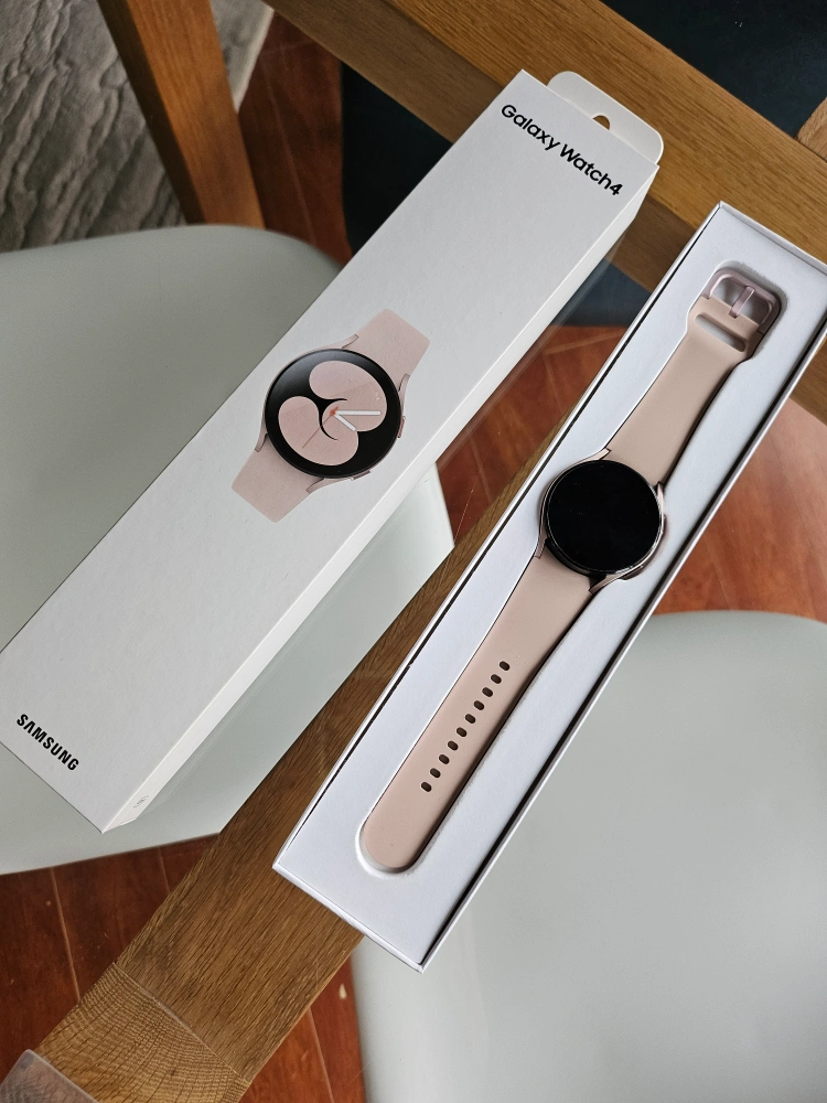Samsung Watch4 40mm rose gold. Some scuffs on the black around the watch face. Works great.
