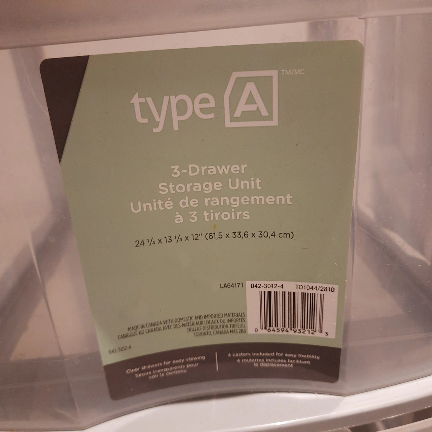 Type A 3 Drawer Storage Unit