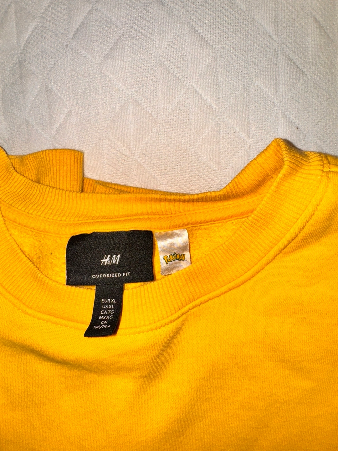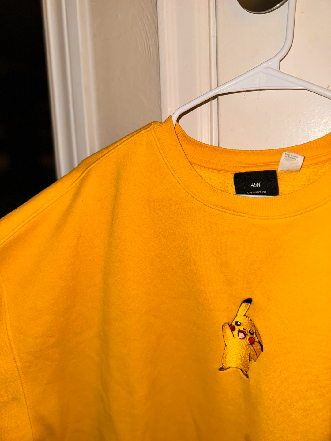 H&M oversized yellow pikachu crewneck sweater, ribbing at the neck, hems and cuffs. Super soft worn only a couple of times. Could drop off (extra $5 depending on area)