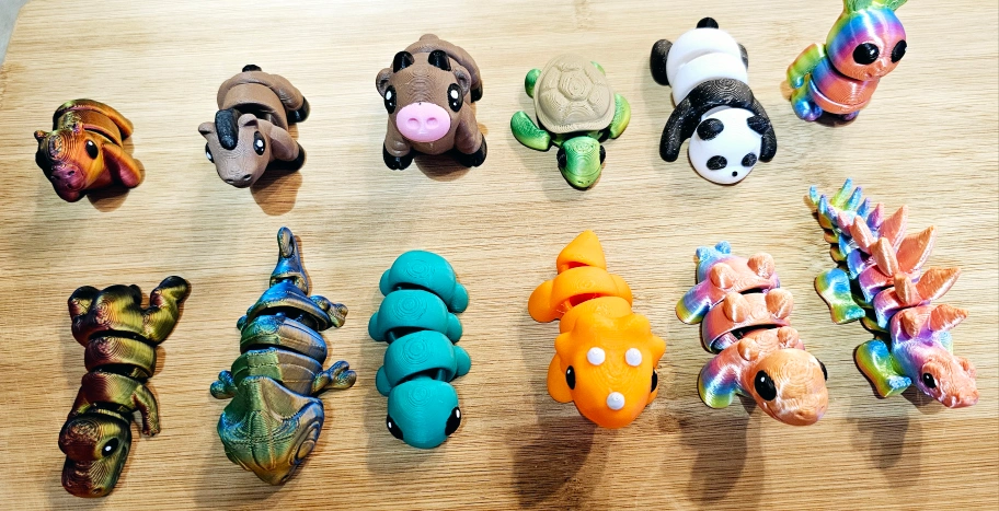 3D Printed Articulated mini Caterpillar, beanie, dogs, turtle, dinosaurs, bee, and more Fidget Friend Animal, Baby Animals, 3D Mini Animal Creatures