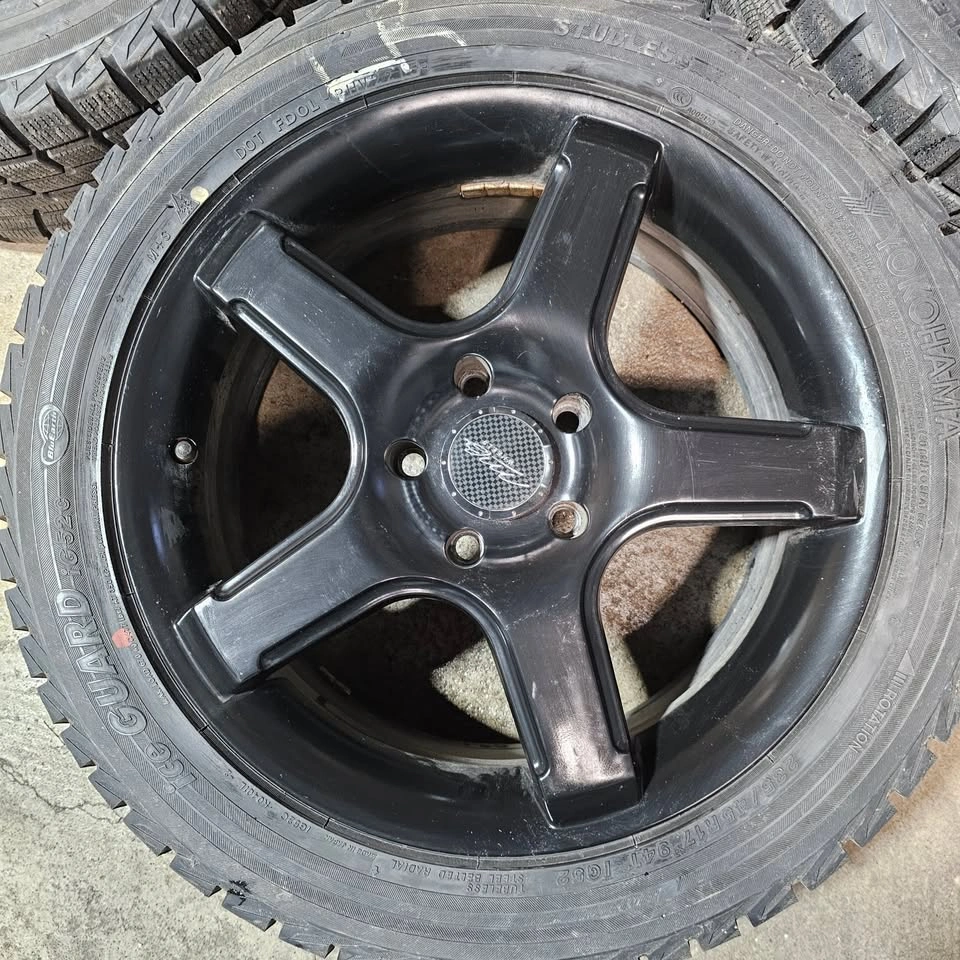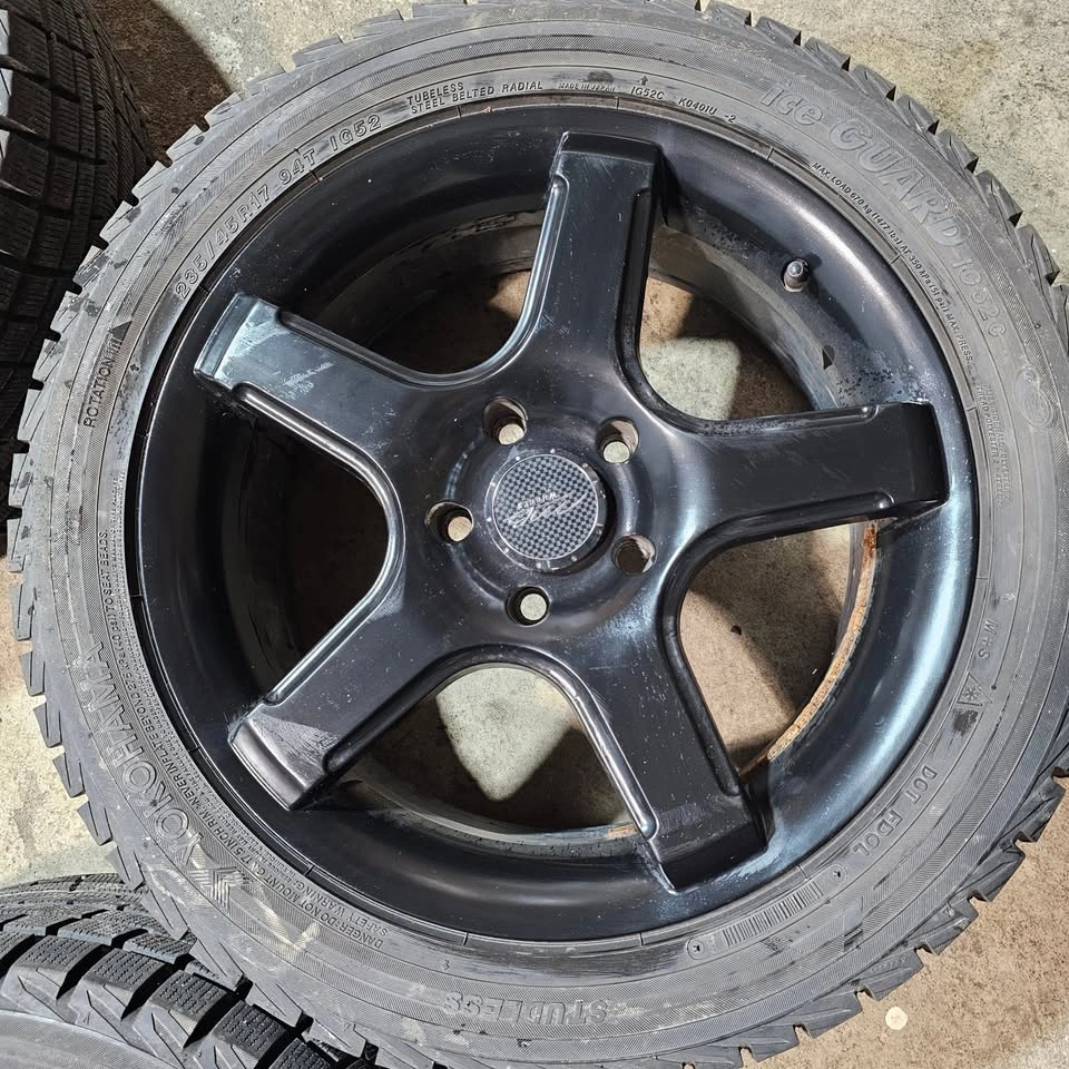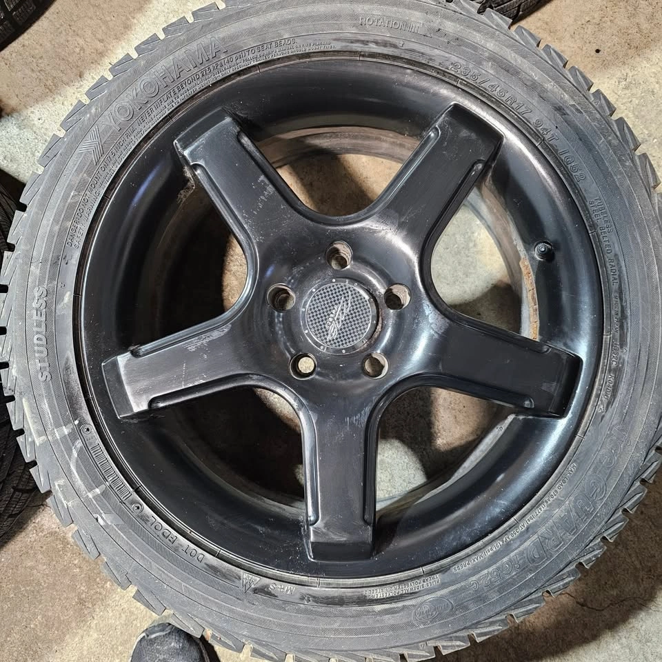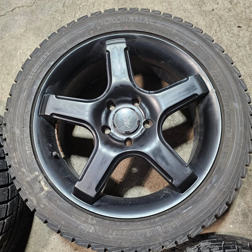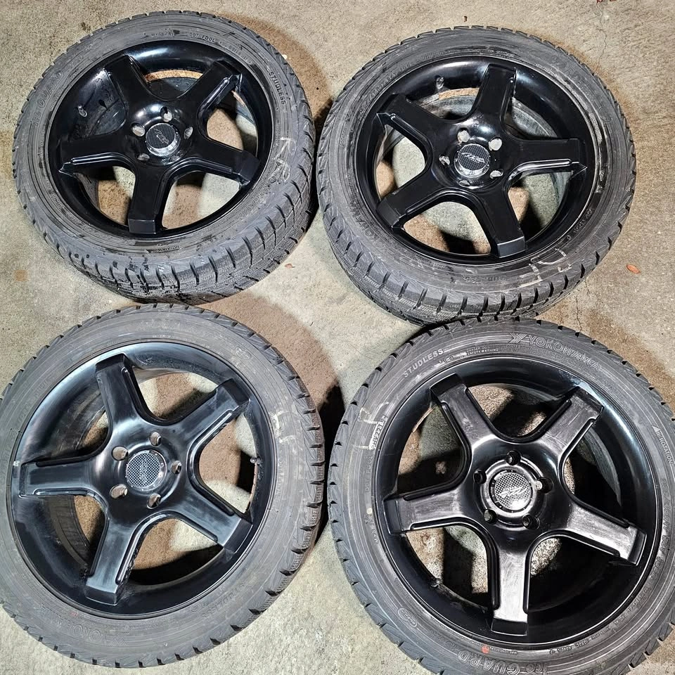 Selling four 17 Inch Yokohama winter tires with black alloy rims for $750. 90% of tread remaining. Tires have no patch or repair. Rims have no curb rash, no bend or crack. Tire size is 235/45/17. Similar to size 205/50/17, 225/45/17. 215/50/17 Fit some of acura TL, honda accord, civic, Mazda rx7, mazda 3, hyundai elantra, nissan sentra, subaru Wrx, kia kona, forte or other car. For reference only, the buyer verifies the fitment please.