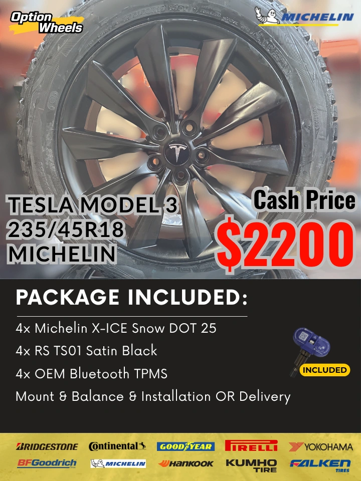 Upgrade your Model 3 with a complete winter-ready package designed for safety, style, and performance. ๐ฐ Cash Price: $2200 โ๏ธ 4x Michelin X-ICE Snow Tires โ๏ธ 4x RS TS01 Satin Black / Charcoal โ๏ธ 4x OEM Bluetooth TPMS โ๏ธ Mount & Balance โ๏ธ Installation OR Delivery ๐ Option Wheels โ Oakville, ON ๐ฒ Message us today to confirm fitment and lock in your winter package!