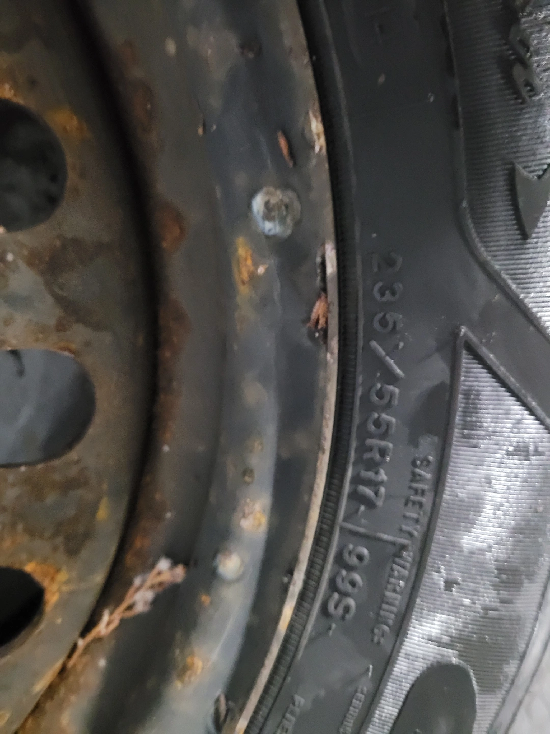 22Selling a used tire, size 235/55R17 99S great condition 95% tread on rims