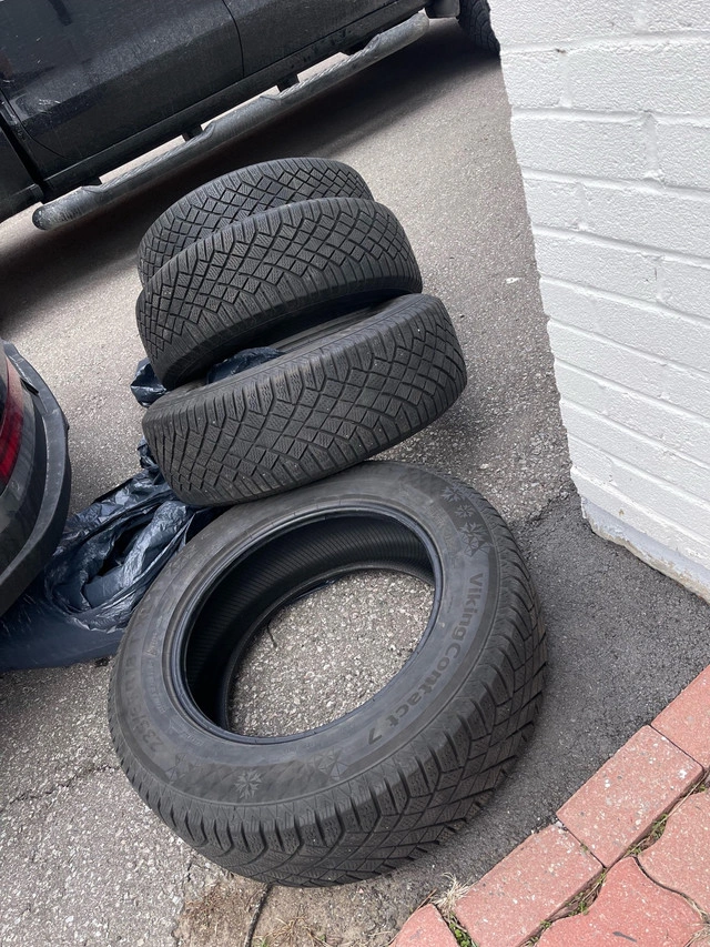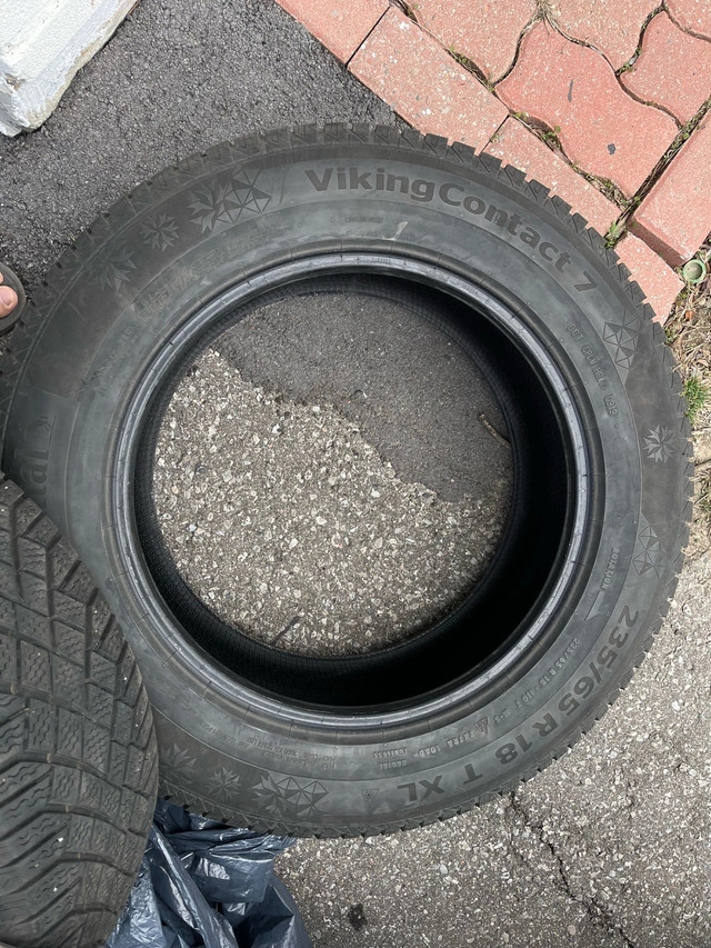 Selling a set of four Viking Contact 7 winter tires, size 235/65R18. These tires are in used condition but still offer good tread for winter driving. Perfect for SUVs or light trucks needing reliable winter traction. * Tire Size: 235/65R18 * Tire Type: Winter * Tire Brand: Viking If the ad's still up, the tires are still up for grabs!