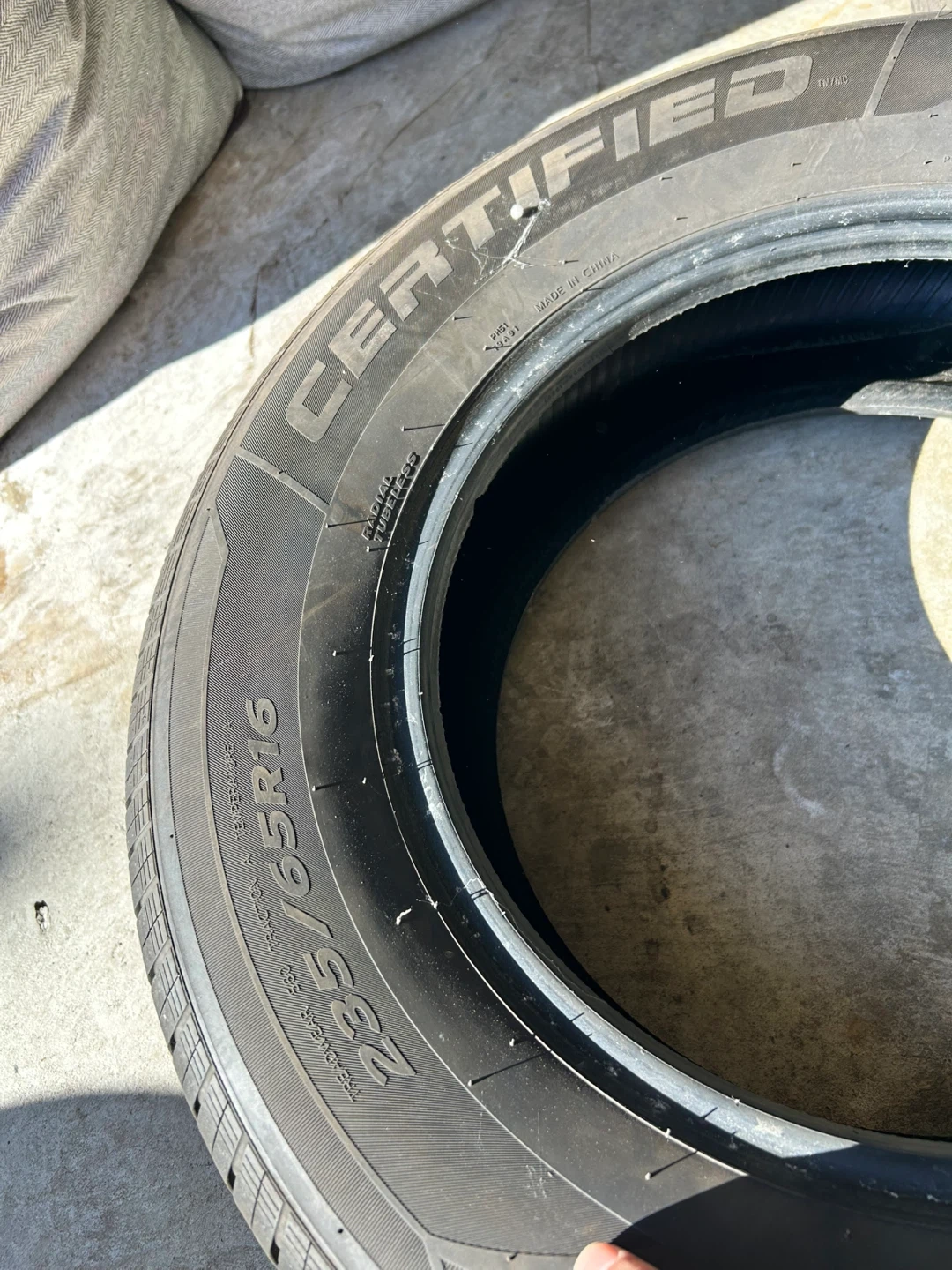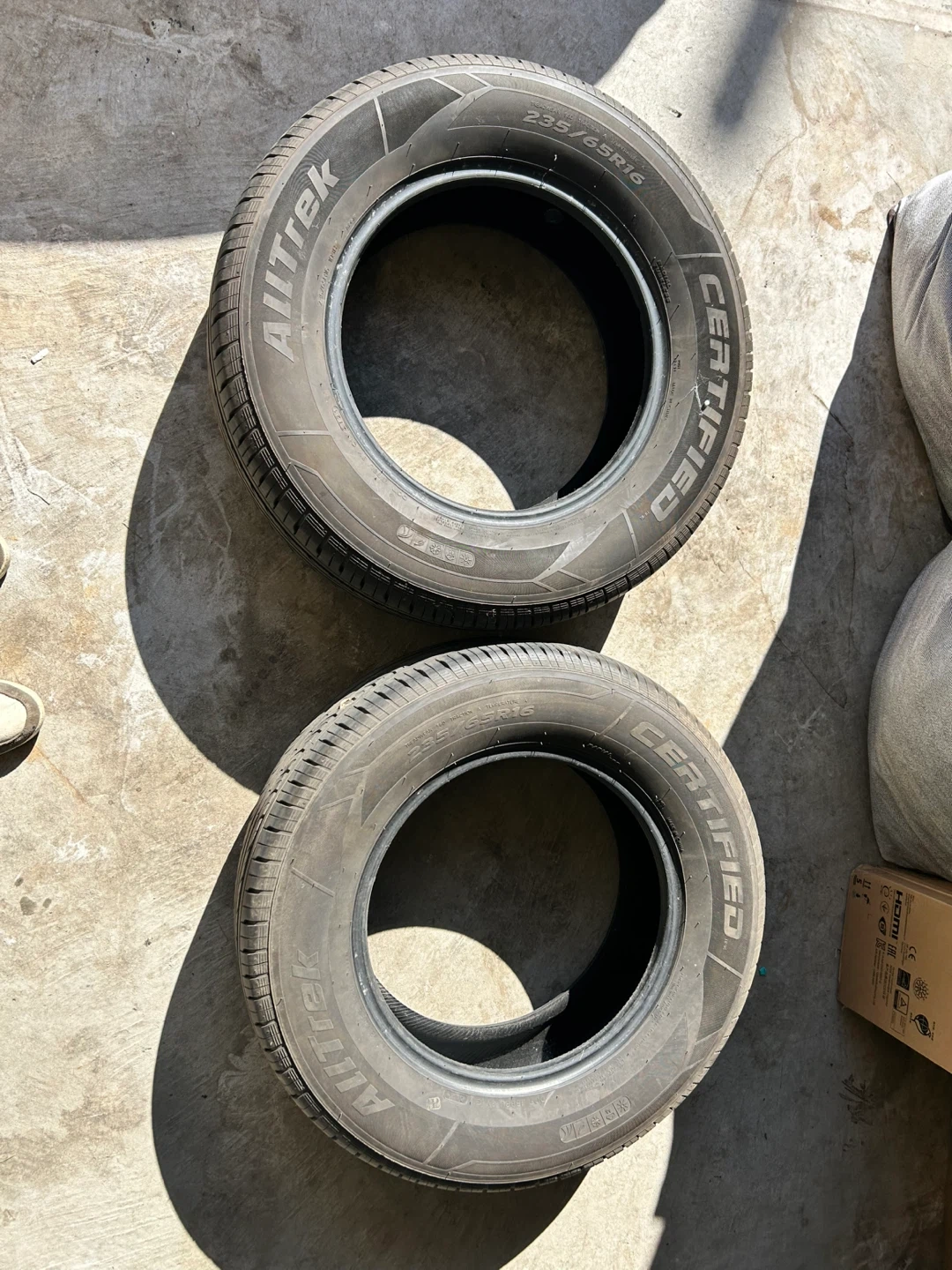 88Have 2 tires 235/65R16 All season tires Brand Certified All Trek tires Pickup in Ajax
