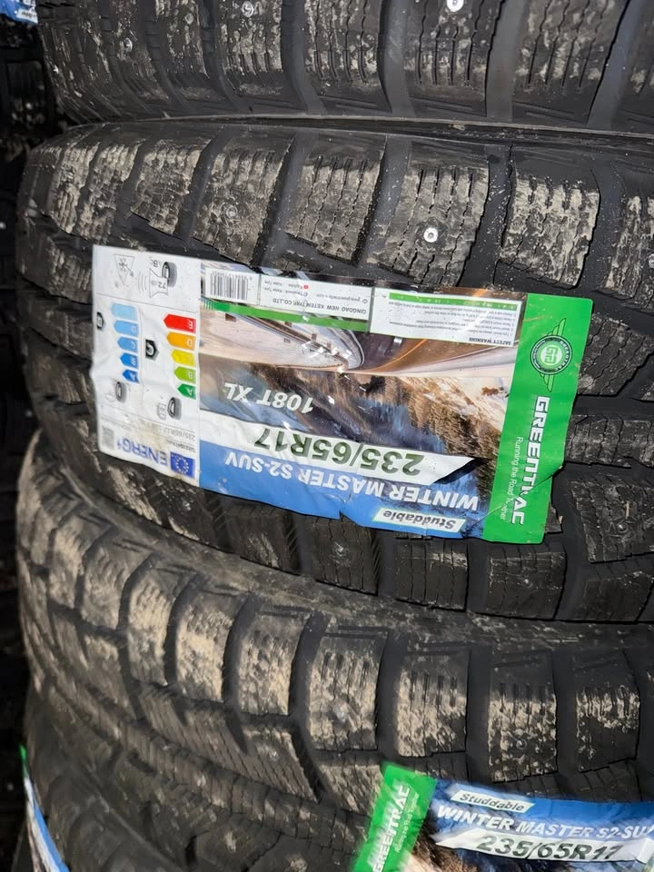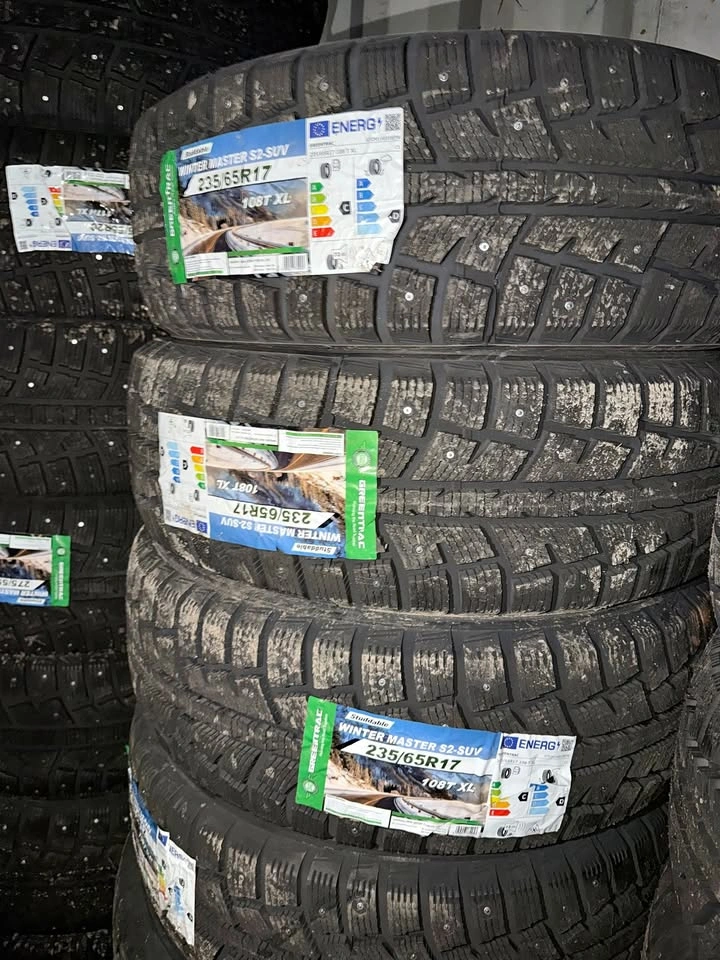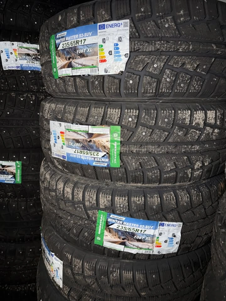 Brand new Greentrac 235/65R17 studded winter tires — never installed. These 235/65R17 winter tires are pre-studded from the factory, providing excellent traction, stability, and braking on ice and snow. Ideal for SUVs, crossovers, and light trucks needing reliable winter performance. Price is firm for a set of 4 tires (GST and tire levy not included). Mounting & Balancing available by appointment (not included in price). Includes 1-year manufacturing defects warranty. Fits Hyundai, Kia, Toyota, Honda, Nissan, Mazda, and other vehicles using 235/65R17 tires. If you need another size, message — we have all sizes in stock. Cash and save!