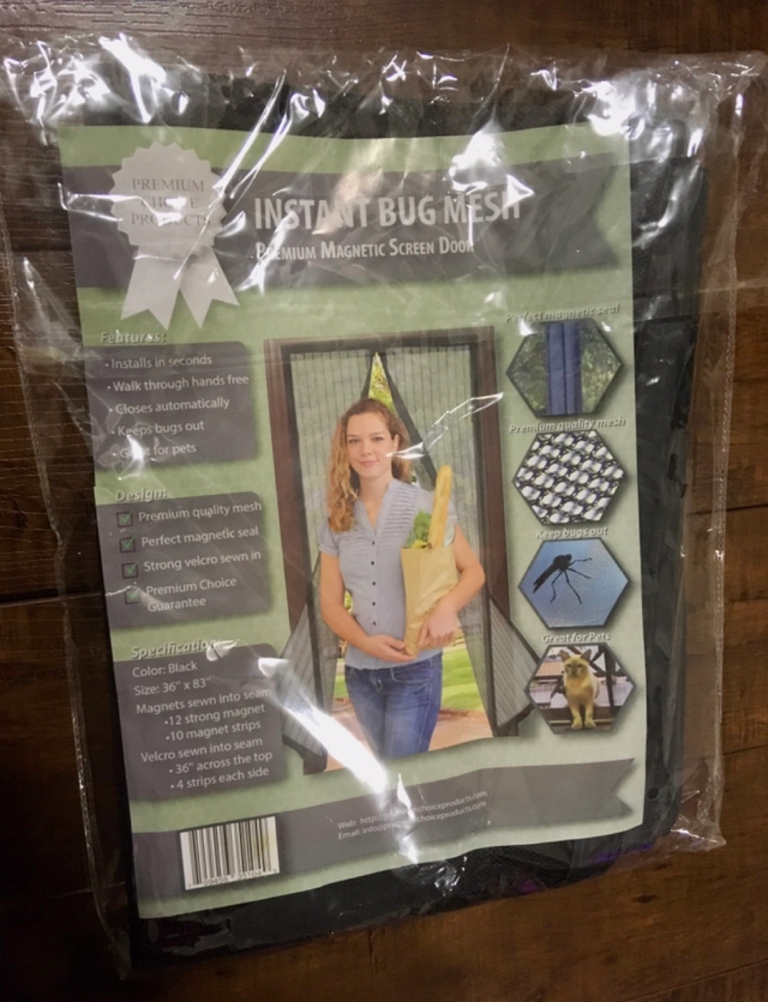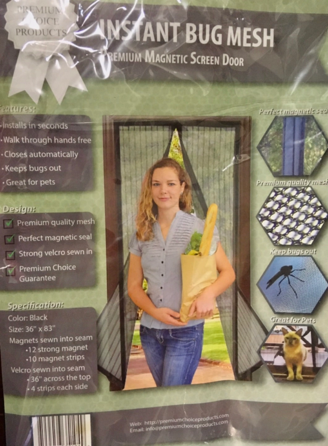 Magnetic Screen Door. Black. Instant Bug Mesh. 36” x 83”.