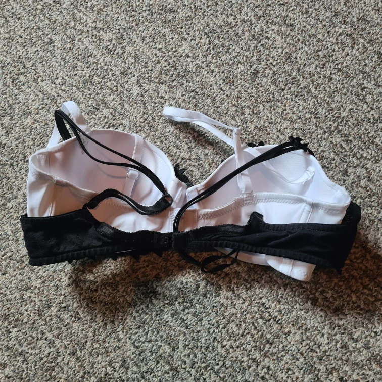 unfortunately I don't have any label left on it so unsure of the brand or the size but if you look at pictures 7 and 8, the white bra under is 34C so I might guess the black bra could be 34A/B or 36A/B.