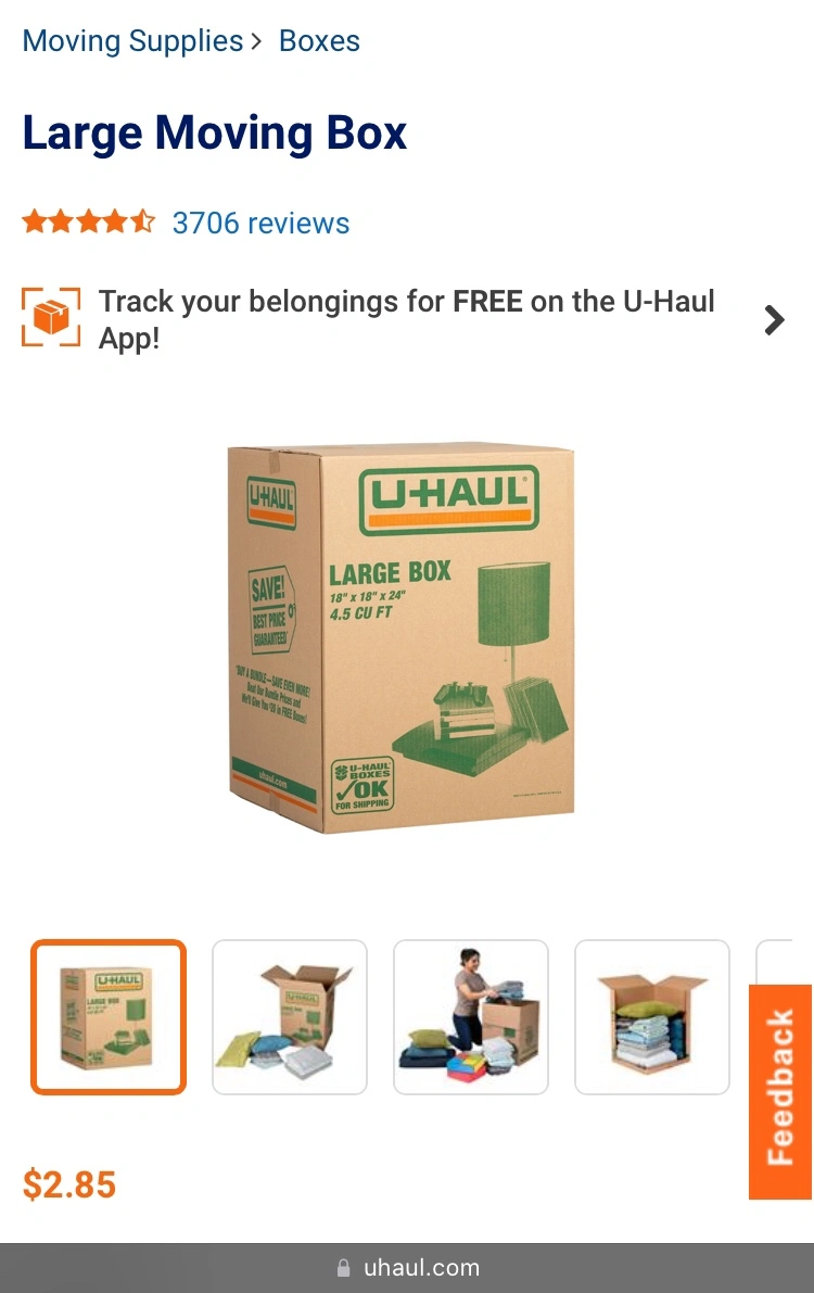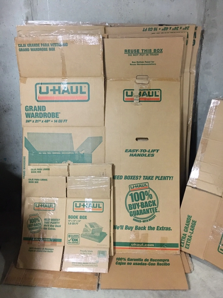 - 5 grand wardrobe boxes with rods - $19.95 each x 5 = $99.75