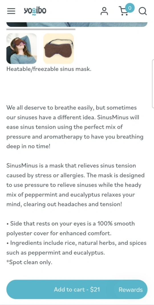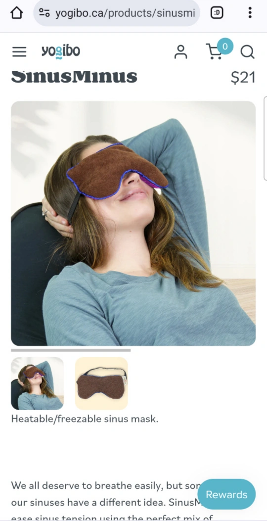 A sinus mask that uses a mixture of pressure and aromatherapy to help with sinus congestion.