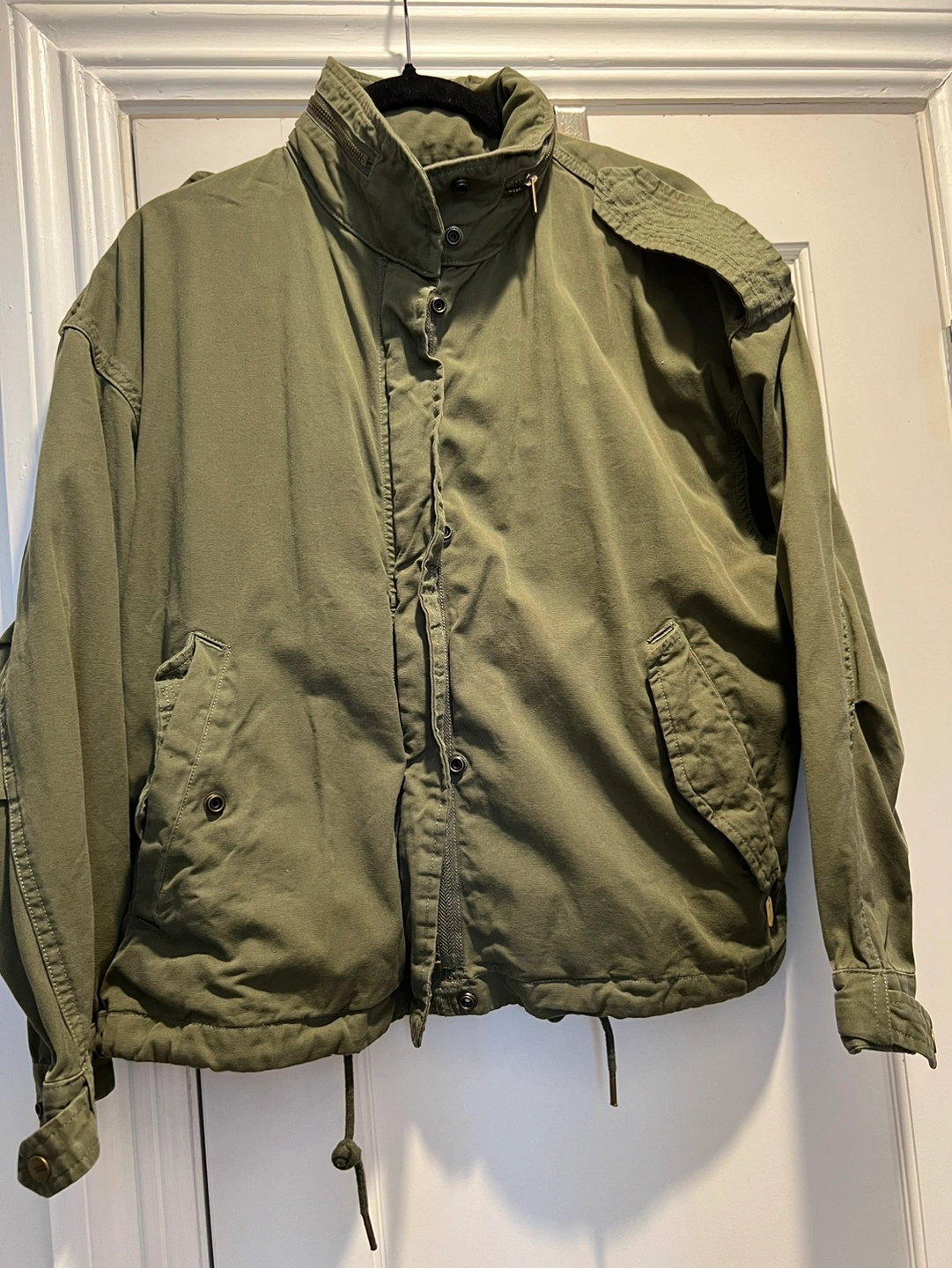 Cute jacket for late summer early fall or early spring. Great jacket looks amazing on if you like this look. Barley worn.