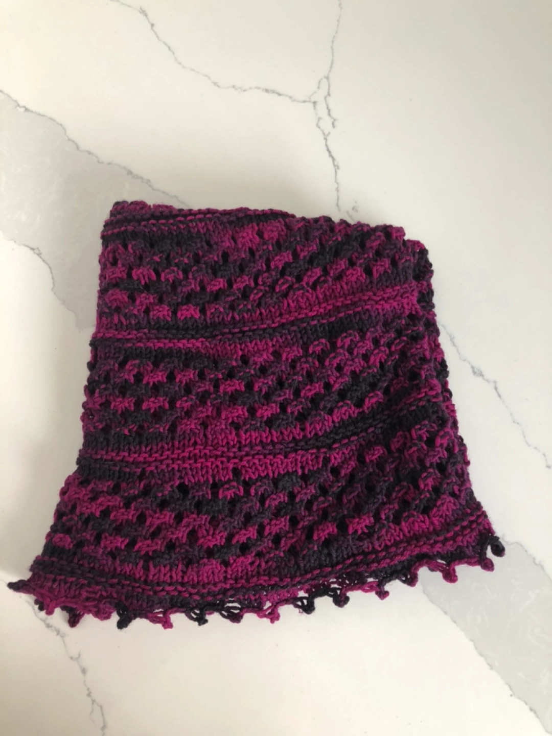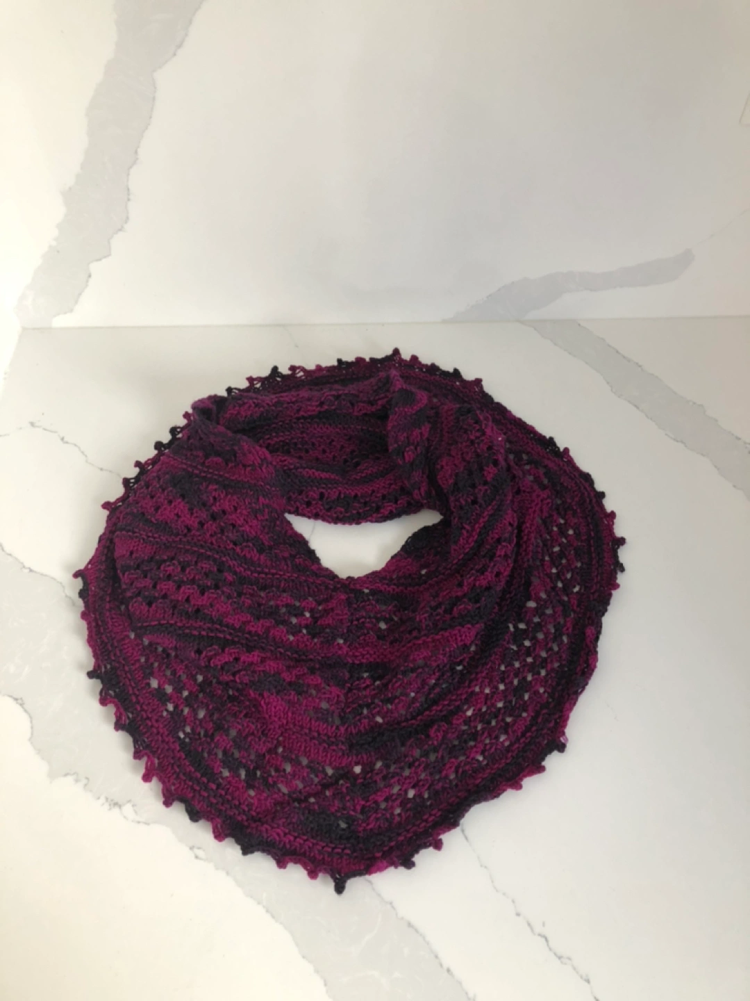 Beautiful handmade cowl made by a friend of mine. Have never reached for it so it deserves to go to a new home! Colours are magenta and black.
