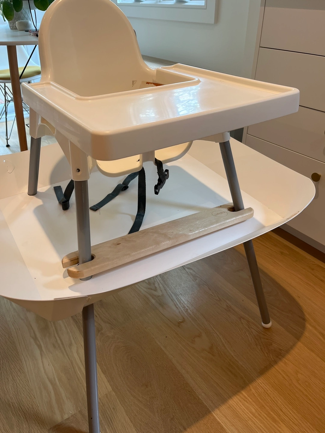IKEA high chair, tray, catchy footrest and catchy food catcher