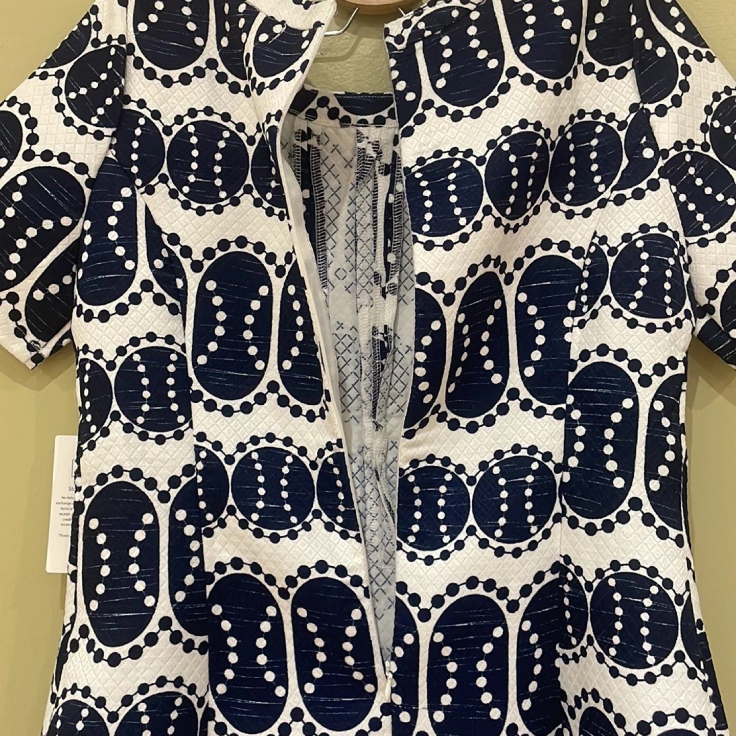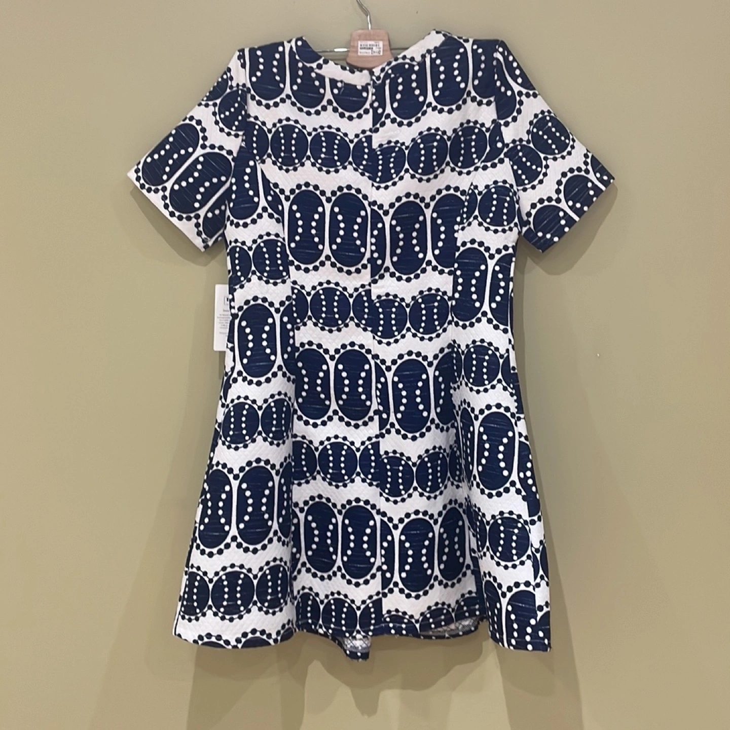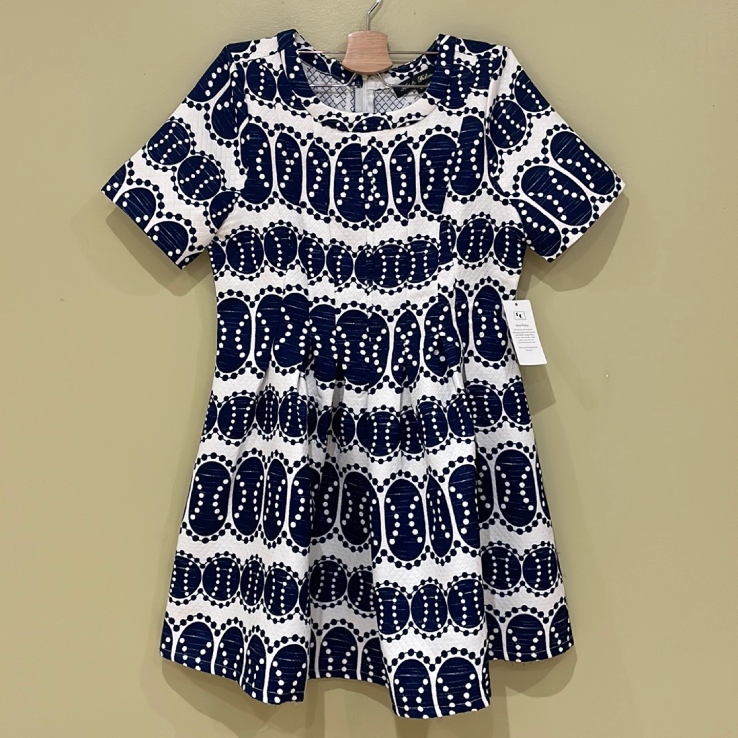Brand new, never used HAT & DELICIOUS blue and white dress with quarter sleeve (29”). Has one zipper in the back. Has original tag and selling for sale price on tag!
