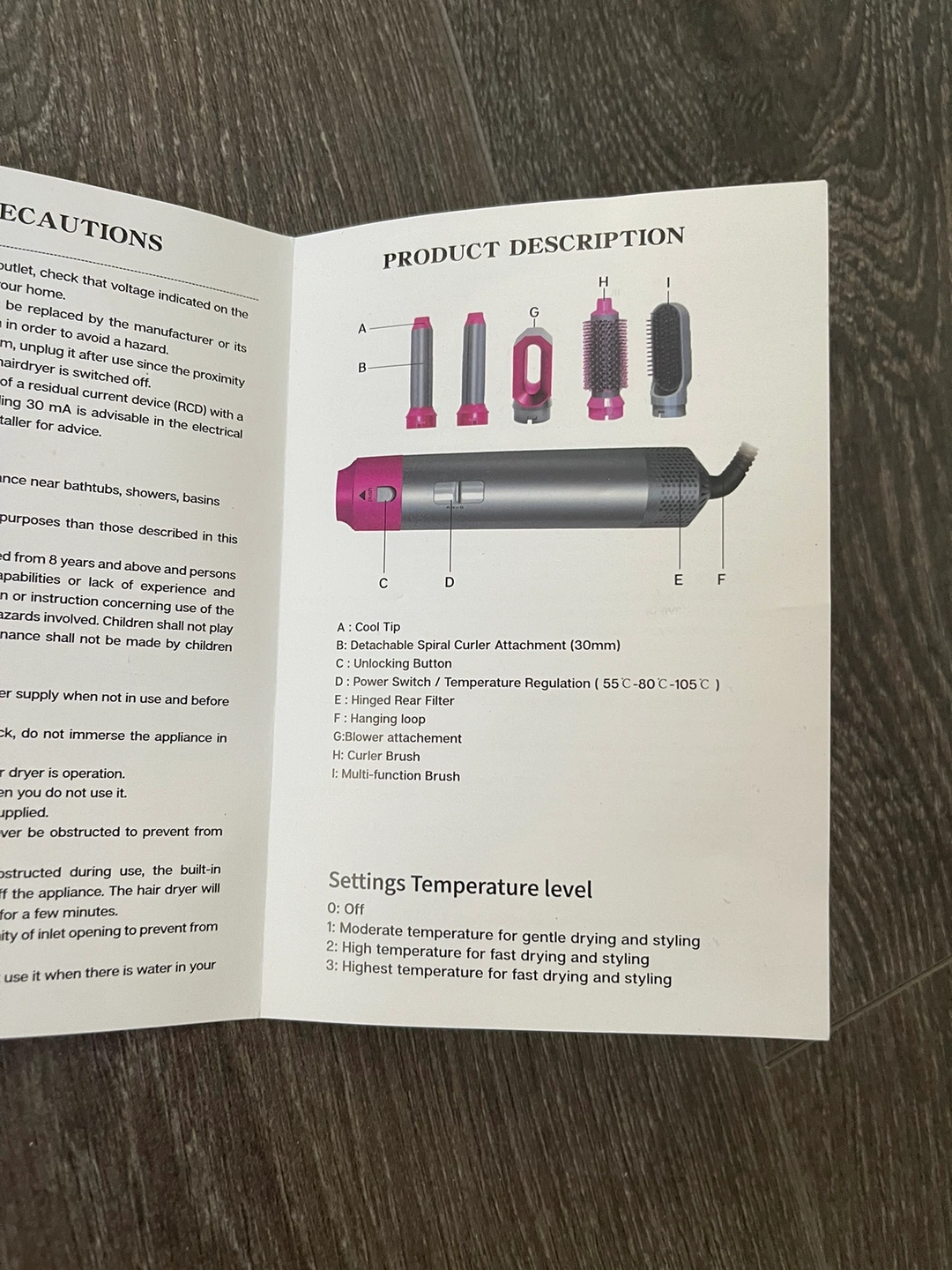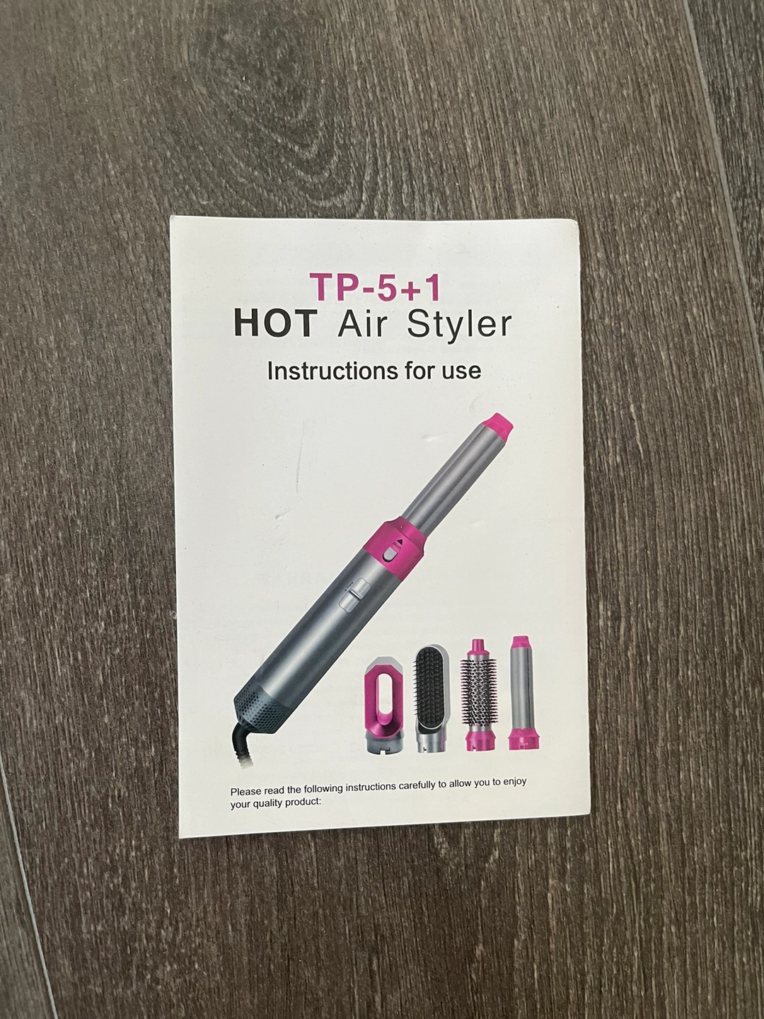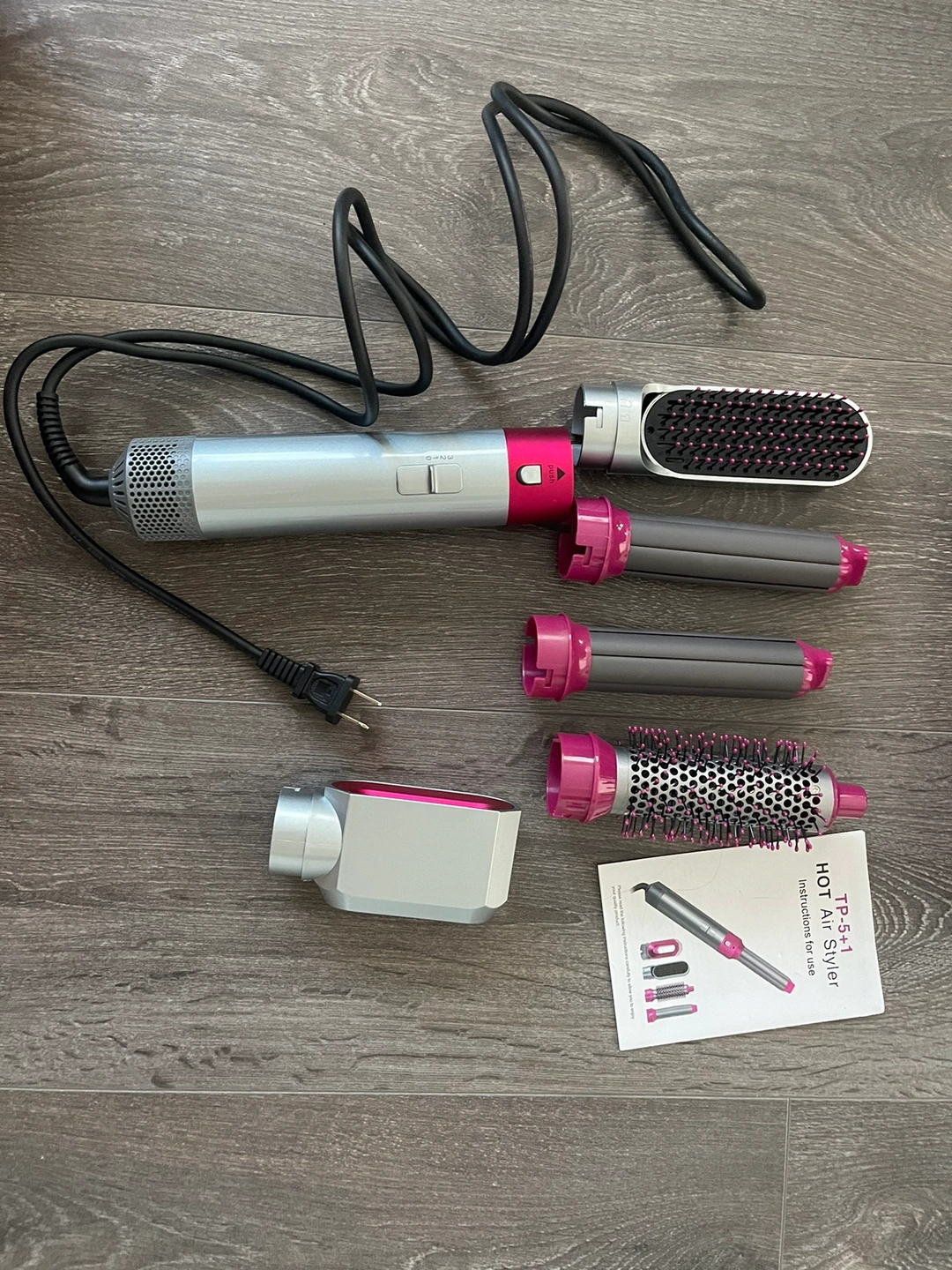 5 in 1 This is a hair dryer brush set, it has hairdryer, straightening brush, long curly hairbrush, short curly hair brush and volumizer. It is suitable for all hair types and all hair styles can be sorted out.