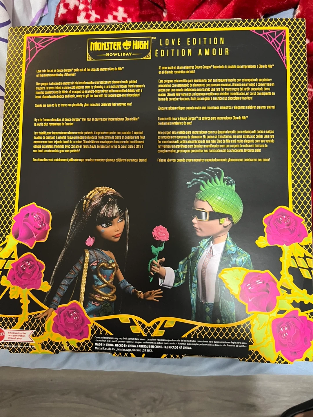 This Monster High Howliday Love Edition set features dolls dressed in their finest attire. The set includes two dolls and is presented in its original packaging. Perfect for collectors and fans of the Monster High series!