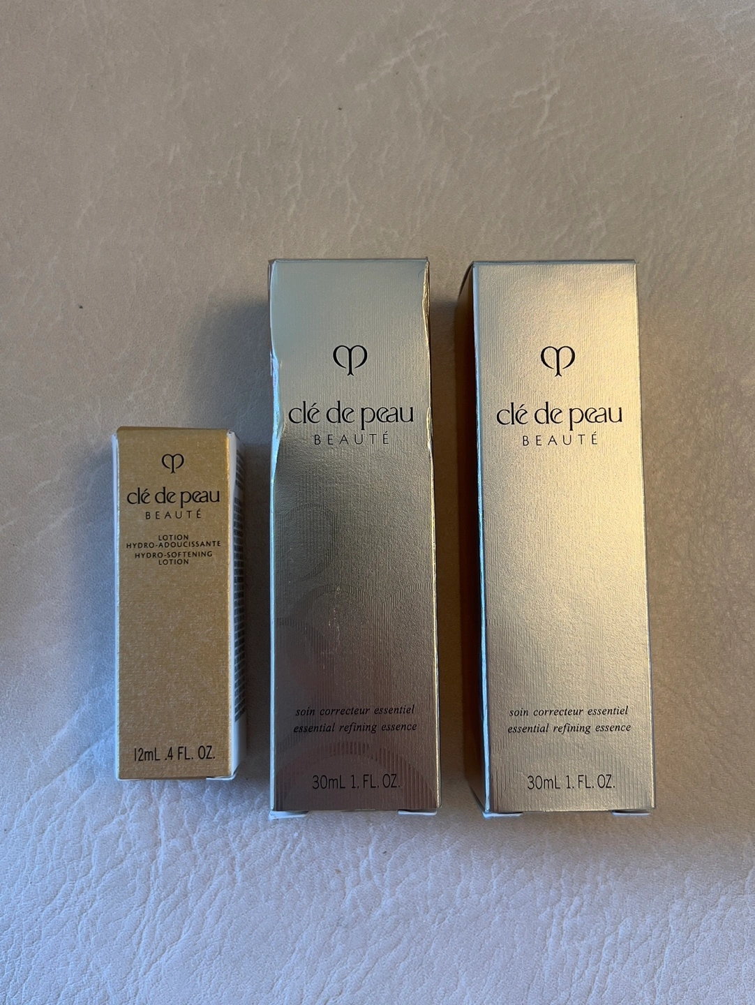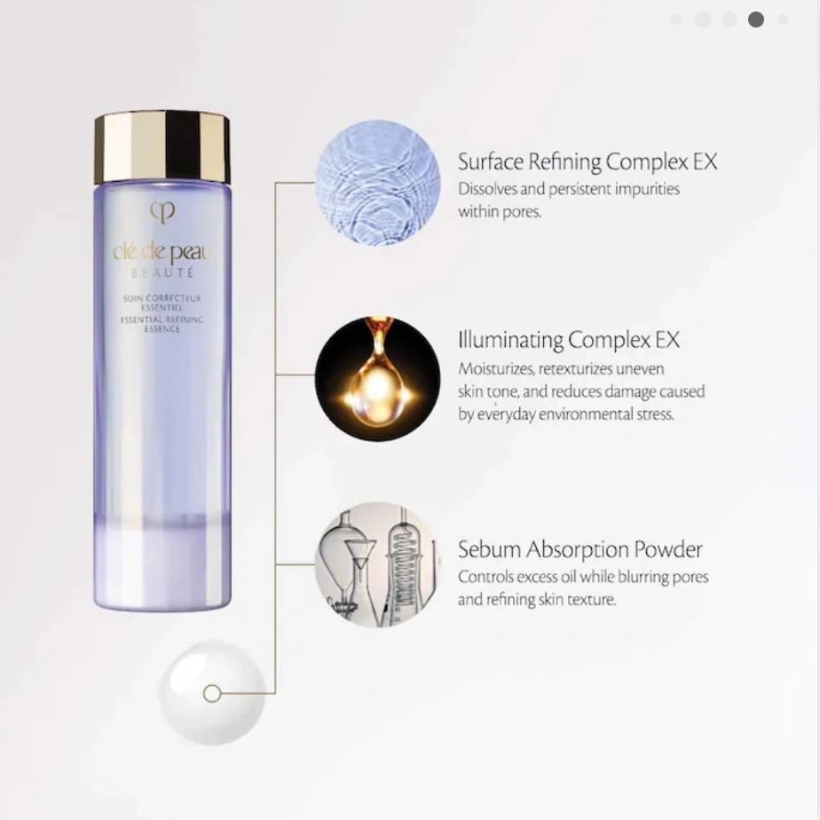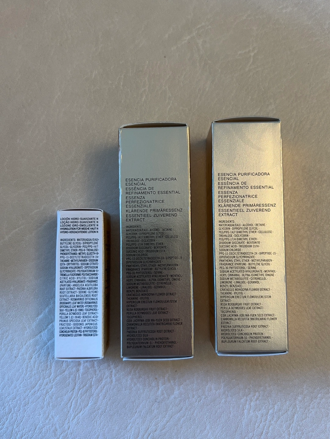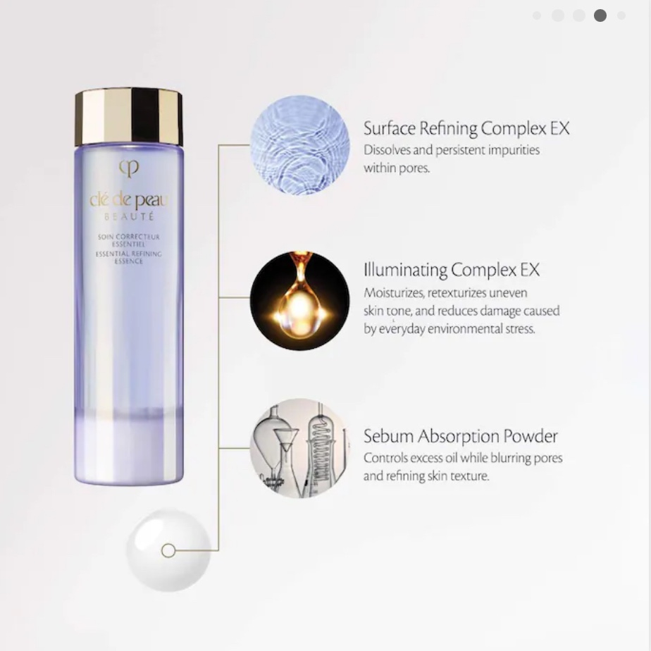 Essential Refining Essence: A mattifying, smoothing facial serum with a water-like texture that diminishes visible pores and absorbs excess oil. Skin Type: Normal, Combination, and Oily Skincare Concerns: Oiliness Formulation: Liquid Highlighted Ingredients: - Hyaluronic Acid: Provides moisturizing benefits and enhances suppleness. - Sebum Absorption Powder: Absorbs excess oil while diffusing light and blurring pores. What Else You Need to Know: This serum’s unique bi-phase formula refines and hydrates skin while absorbing excess oil. It quickly mattifies with a delicate cooling sensation. Essential Refining Essence diminishes the look of dryness and roughness, minimizes the look of visible pores, and hydrates for up to 24 hours without stickiness. Hydro-softening Lotion: A balancing, softening lotion that quickly hydrates skin to address roughness and dryness while refining texture to reduce the look of pores. Skin Type: Normal, Dry, and Combination Skincare Concerns: Dryness Formulation: Liquid Highlighted Ingredients: - Hyaluronic Acid: Provides moisture and suppleness to skin. - Cherry Leaf Extract: Calms and soothes skin. - Scutellaria Baicalensis Root Extract: Helps protect the skin from the visible effects of oxidative damage. What Else You Need to Know: Hydro-Softening Lotion visibly rejuvenates skin with intense hydration and refines skin texture while diminishing the look of pores. It addresses roughness and dryness for a smooth, dewy look. With prolonged use, the lotion helps maintain healthy-looking, visibly radiant skin that’s resistant to roughness and dryness.