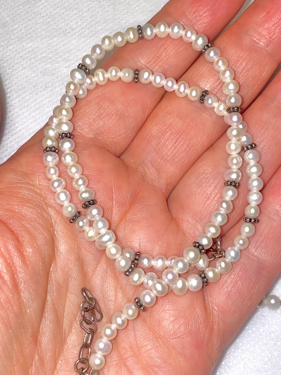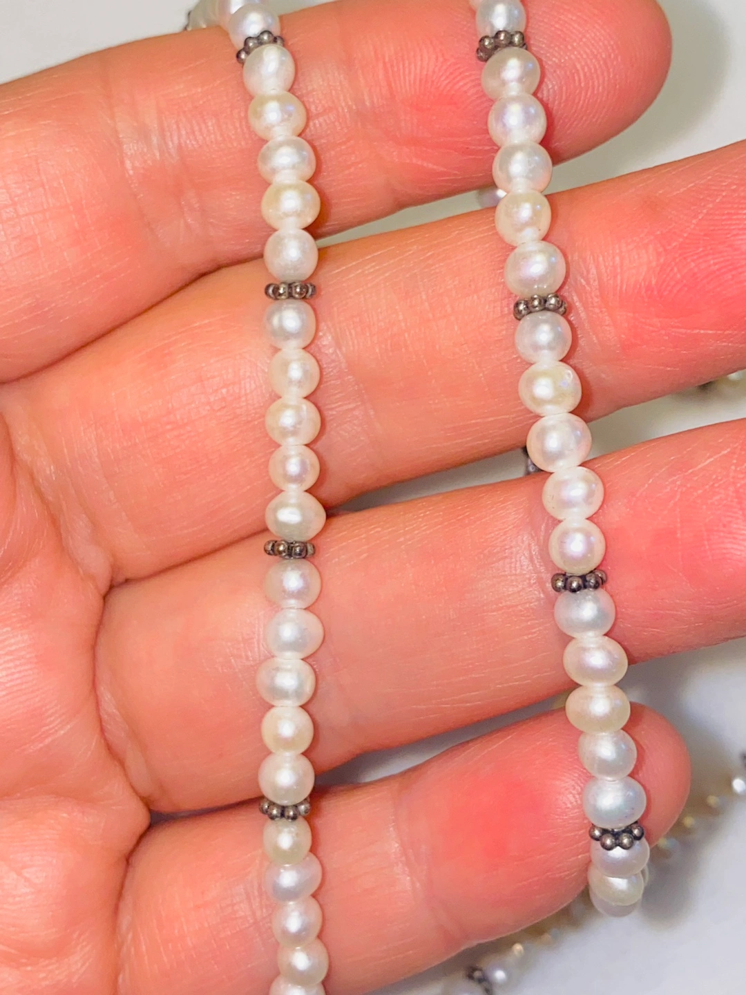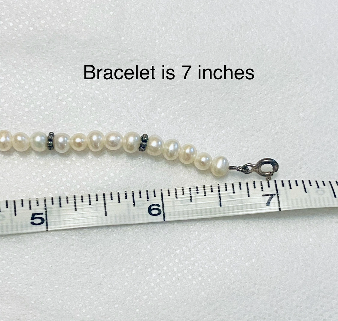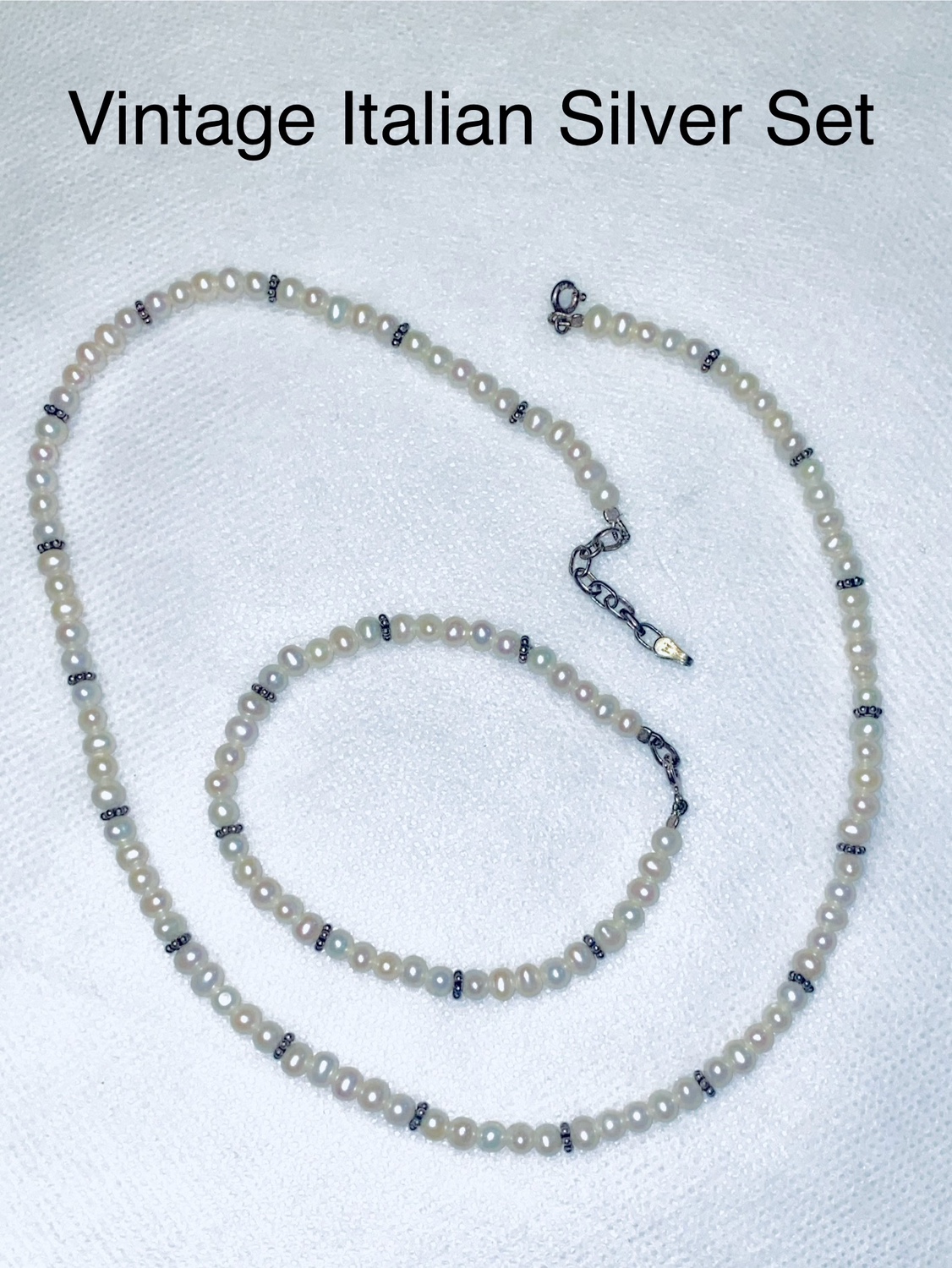 Vintage Italian Sterling Silver set of necklace &bracelet with a real Pearls ๐ธ