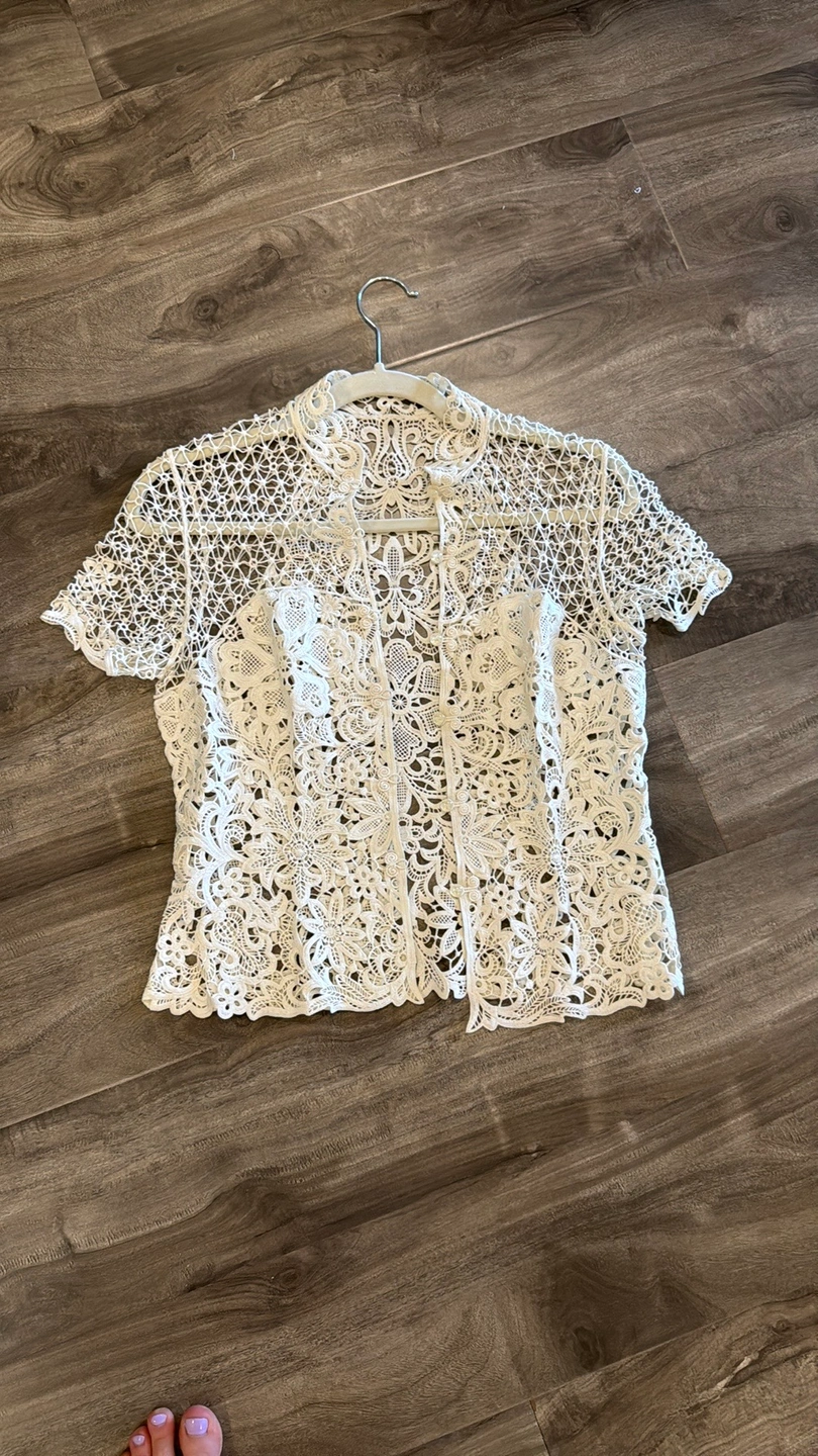 White Lace top - fite xs Sorry im too big now im afraid to try it on Pit to pit 16” Length 20”