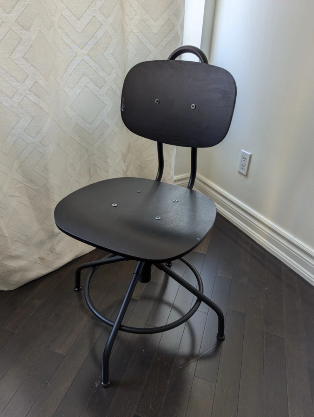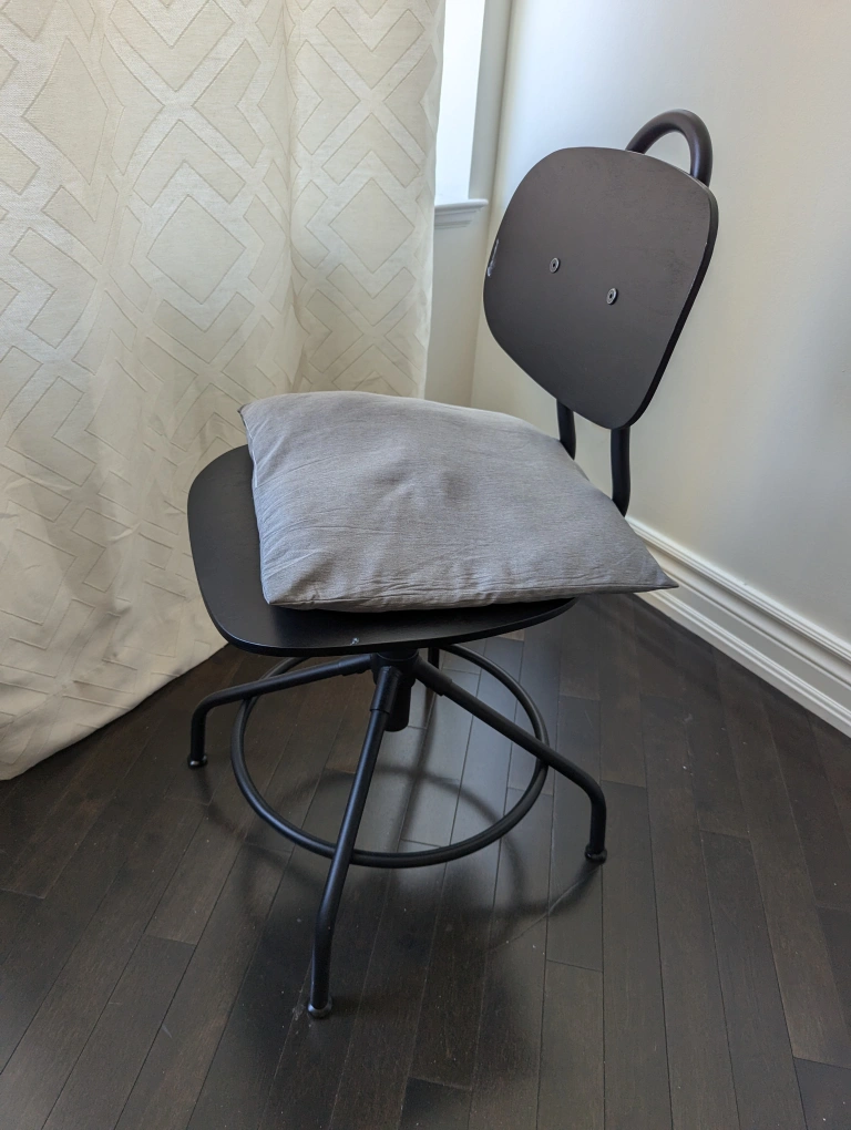 Used not frequently for less than 2 years, functions perfectly with adjustable height, only some minor white paint marks. Can come with the cushion shown.