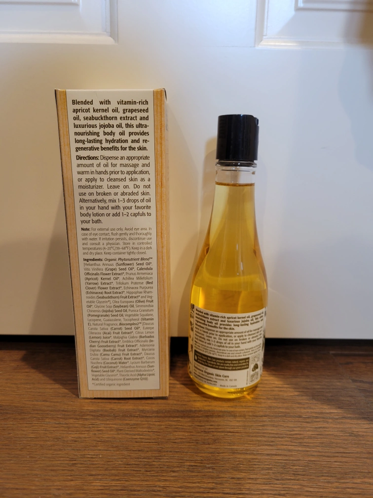 Blended with vitamin-rich apricot kernel oil, grapeseed oil, seabuckthorn extract and luxurious jojoba oil, this ultra-nourishing body oil provides long-lasting hydration and re-generative benefits for the skin.