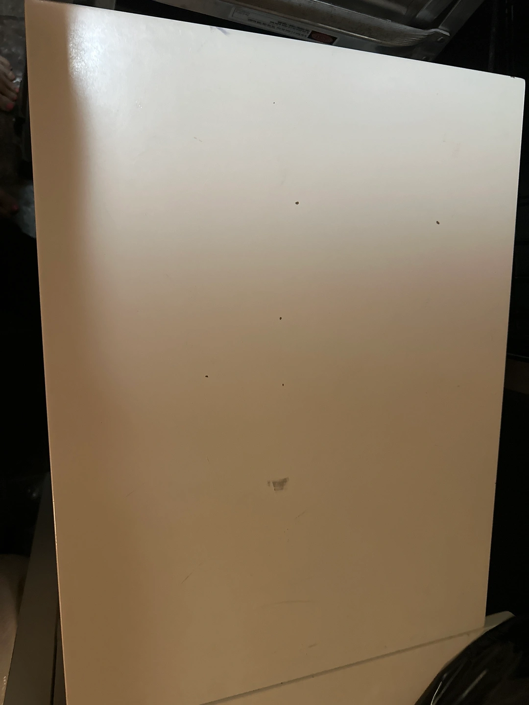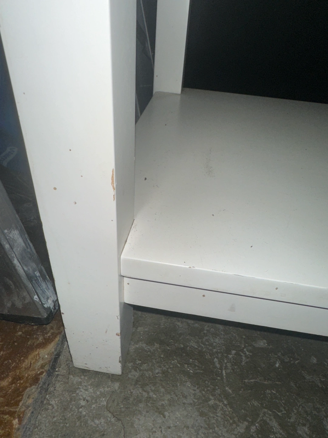 Small chips on the bottom and some on the top surface. A little bit of touch up paint and it will look brand new :)