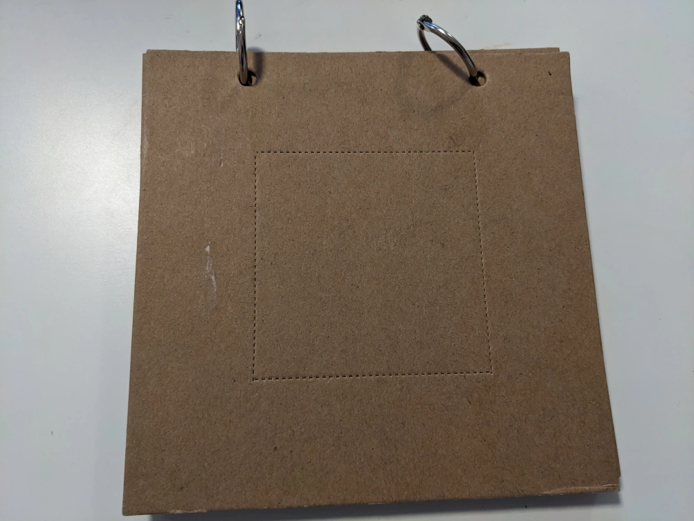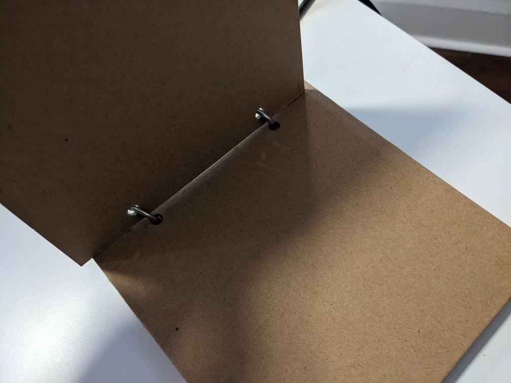 6 cardboard pages on two rings