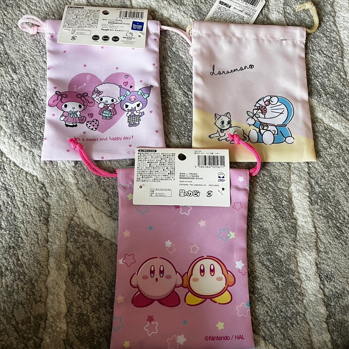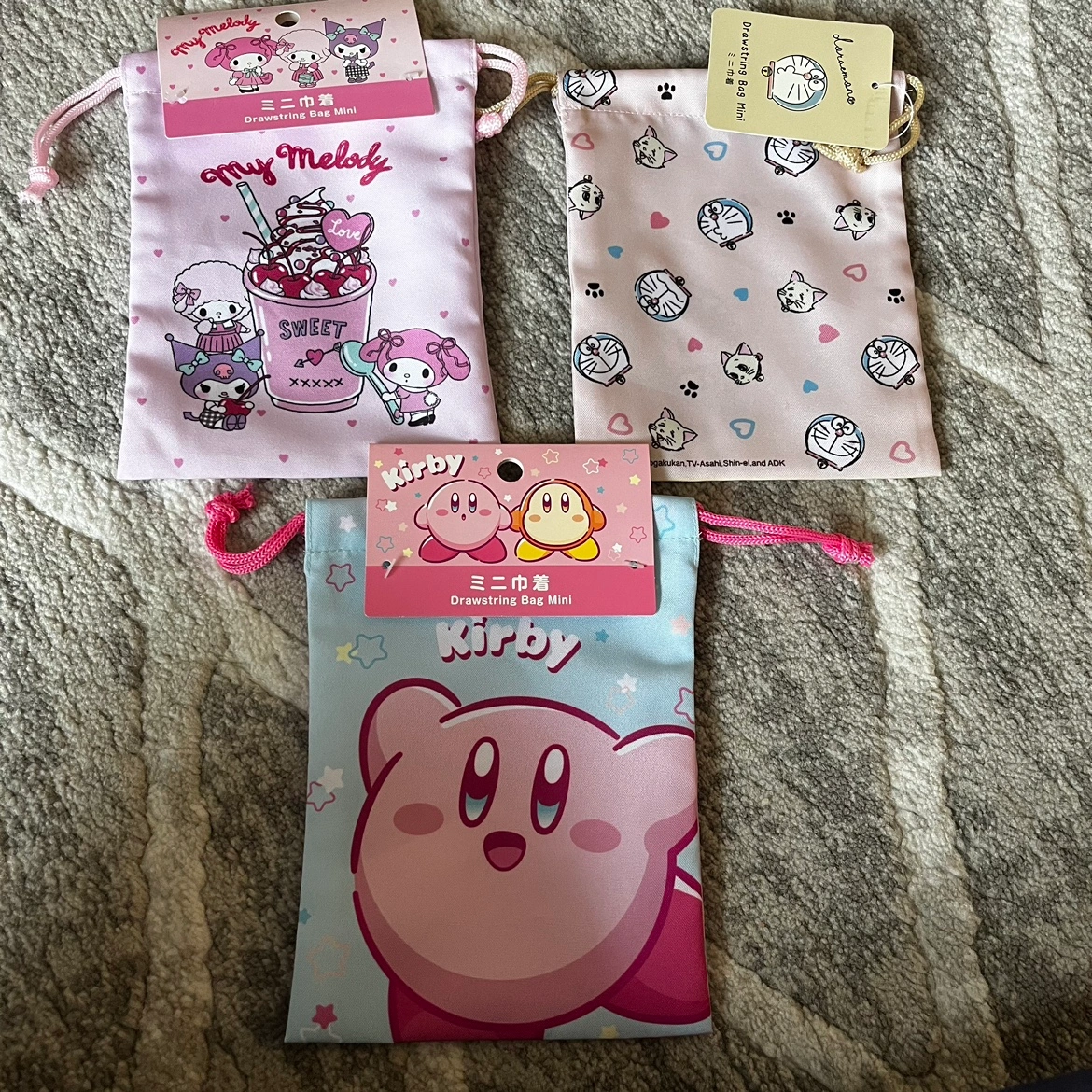 BNWT japan Kirby, Doraemon, My Melody drawstring bag