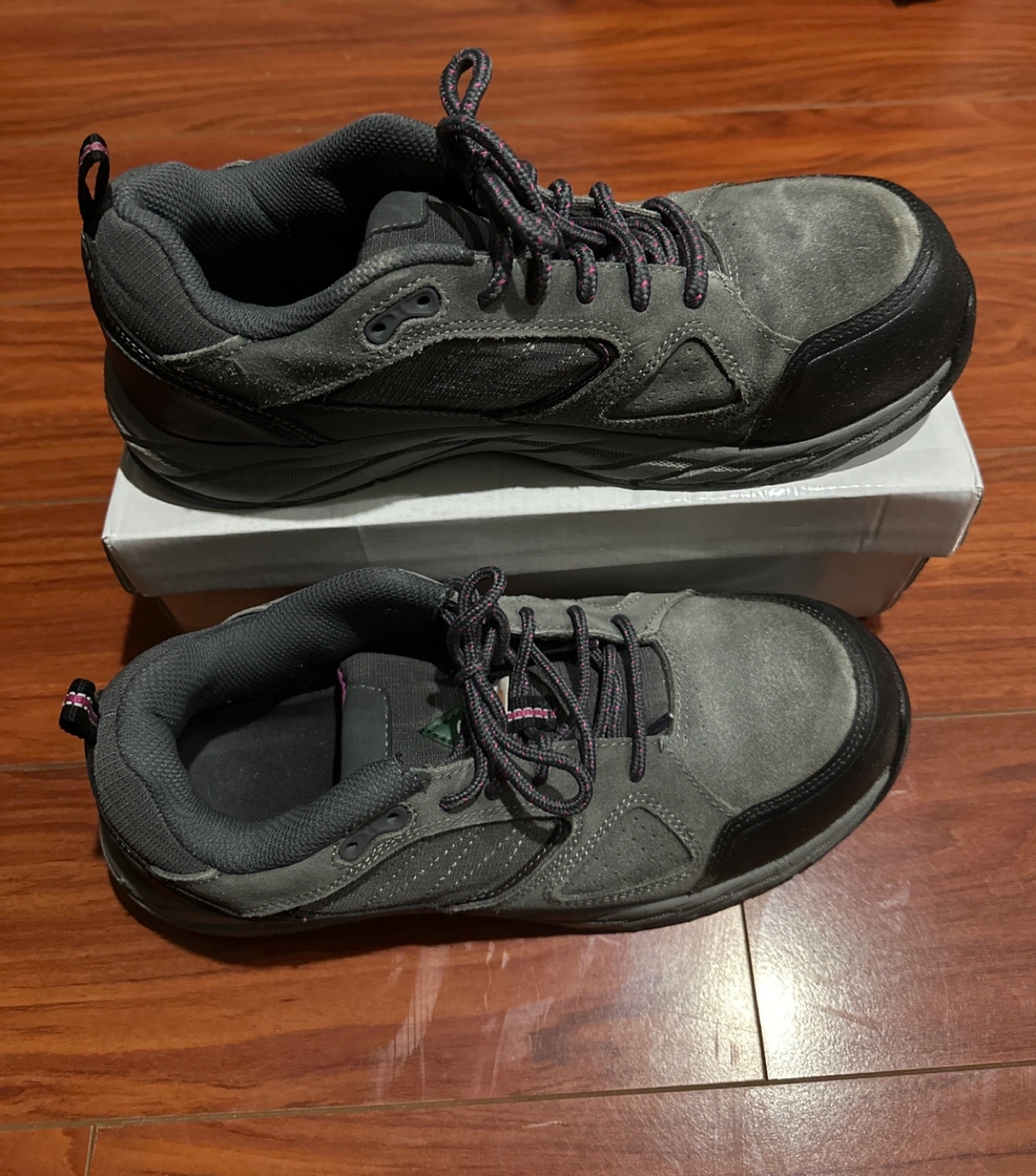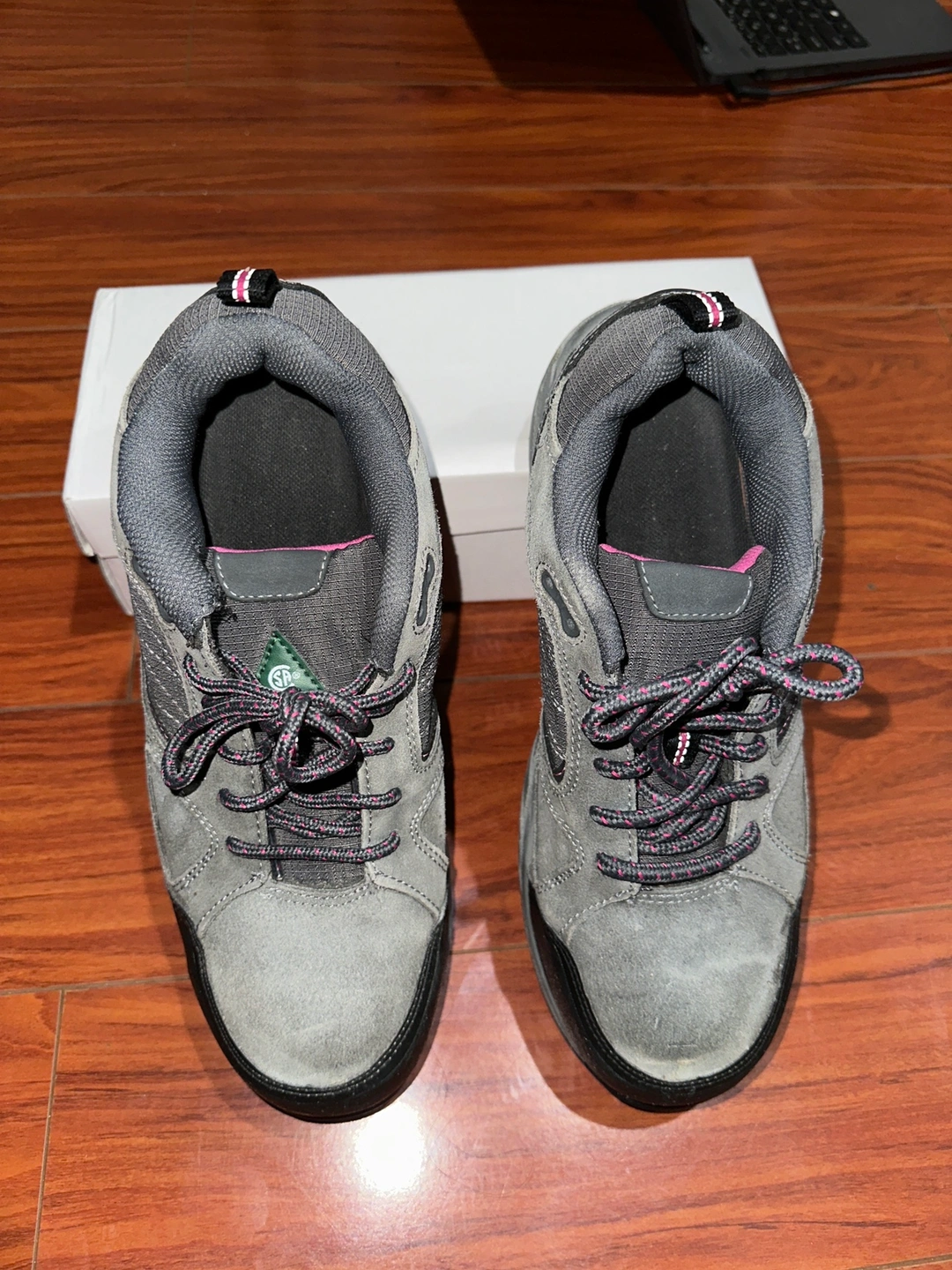 This is a Workload Steel Toe safety shoe with green triangle.