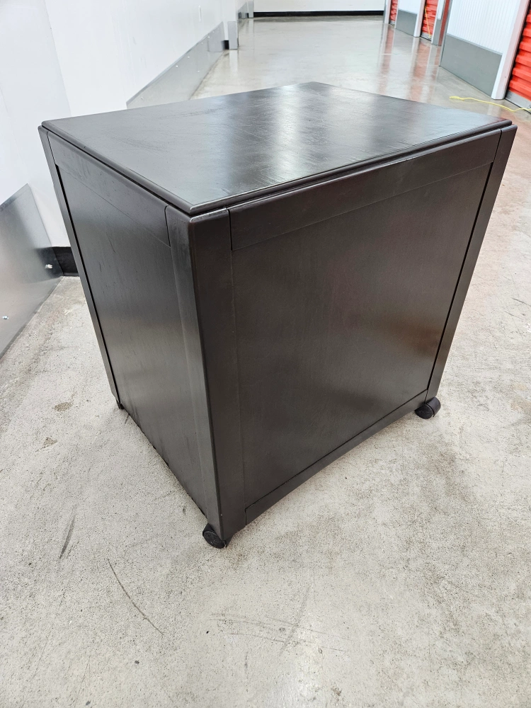 Can be used as a night stand or an office filing cabinet. Bottom drawer can fit letter sized file folders.
