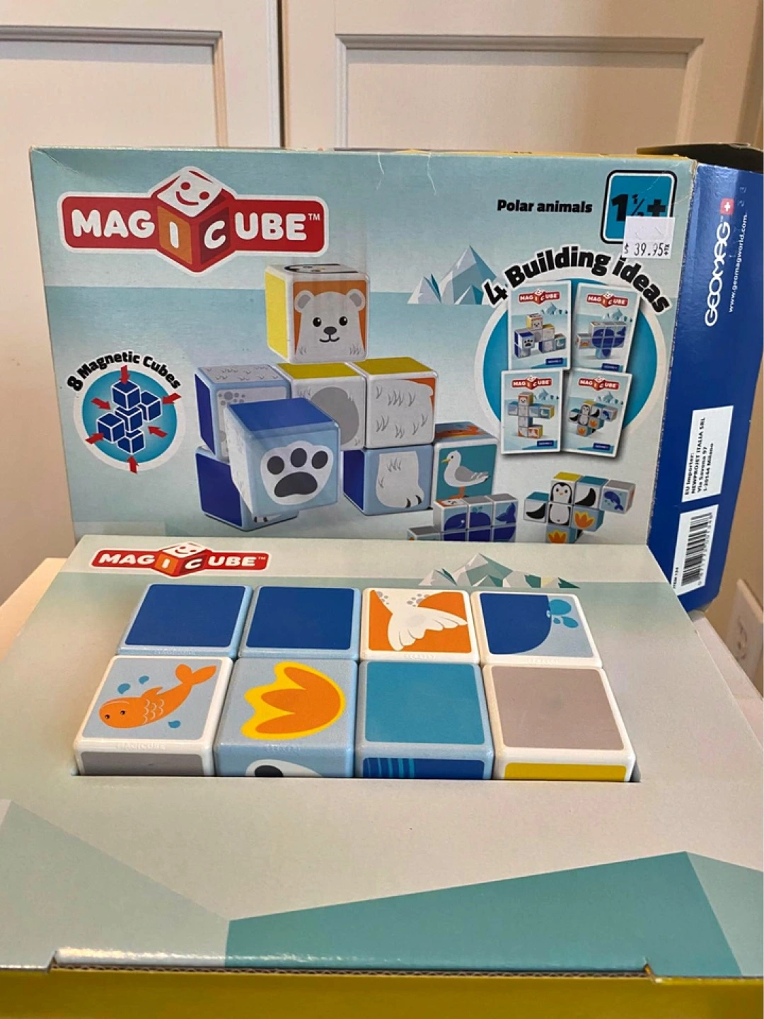 8 separate magnetic cubes. Following the template cards, you can build different animals with magnetic cube. Great learning puzzle for kids. No mess activity.