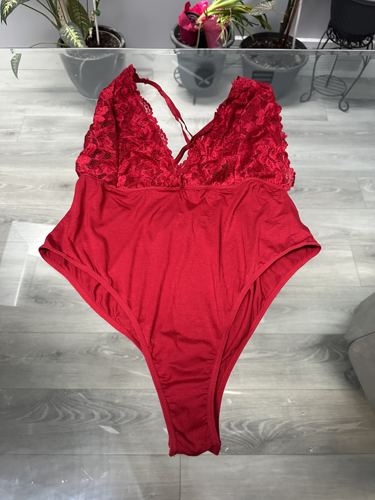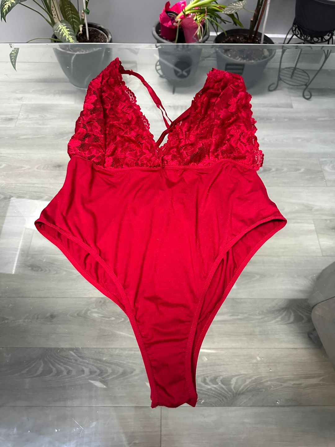 Red Bodysuit with Lace