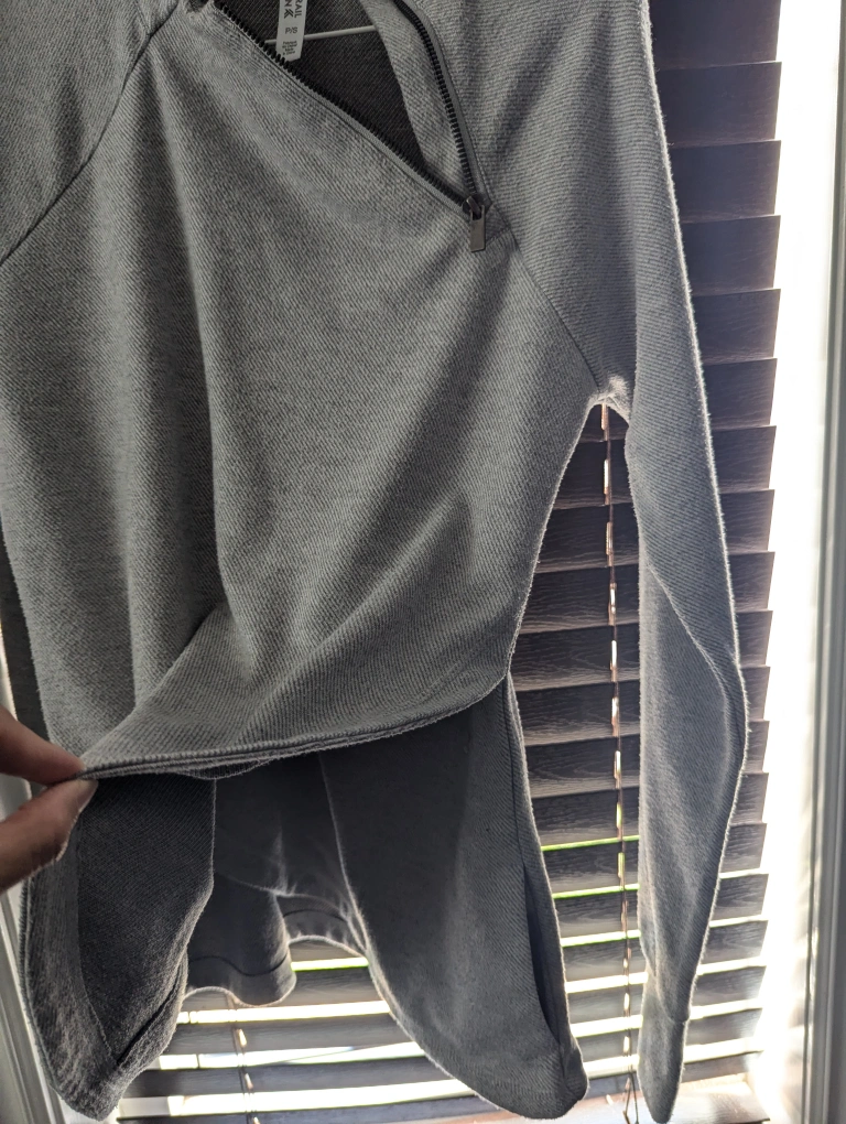 See last 2 photos for fit/look with models, but actual color is light grey.