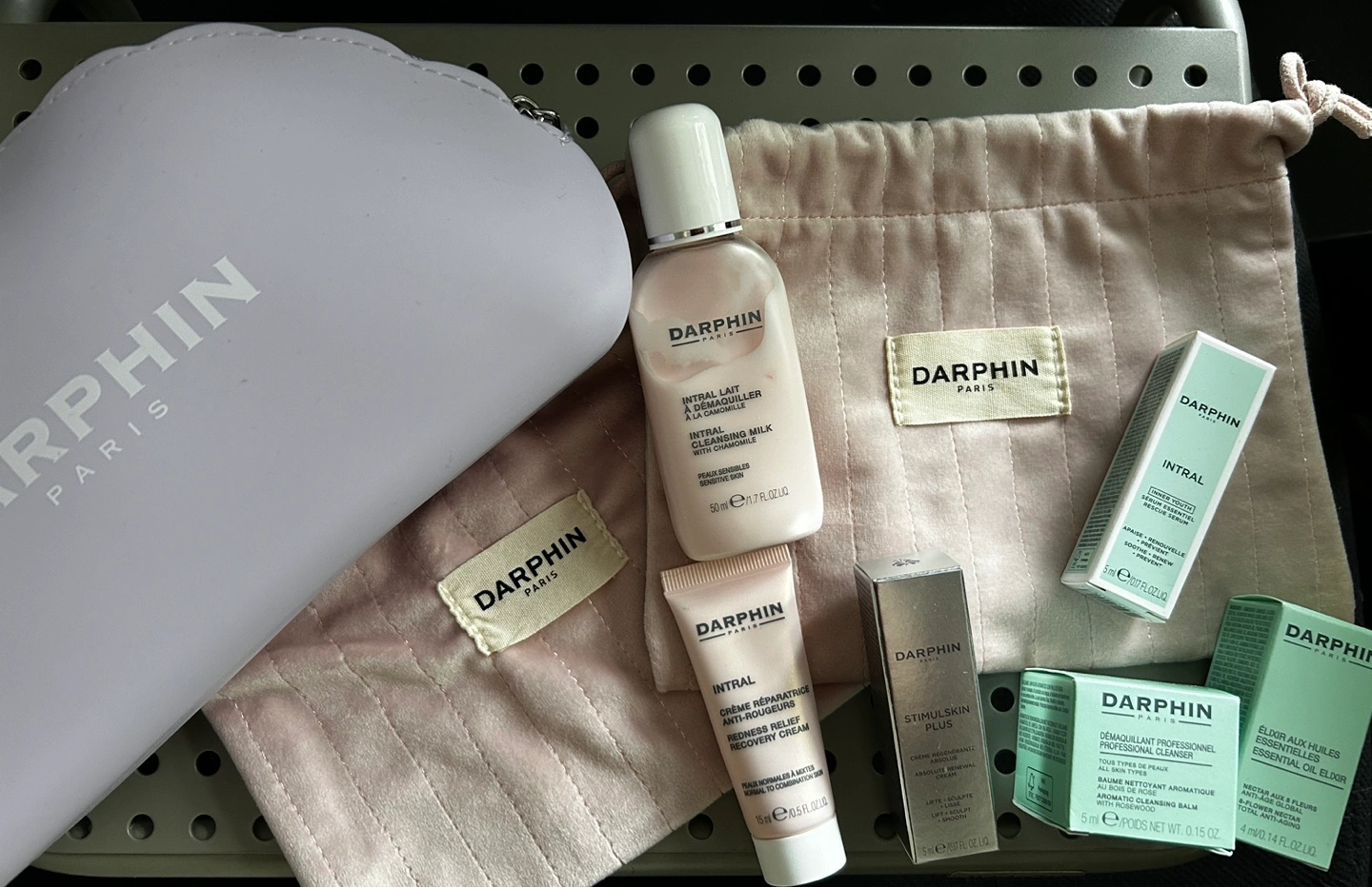 Treat yourself! 🥰 Premium, Darphin travel-sized face products (great for sensitive skin!) + 3 bags to carry all your essentials.