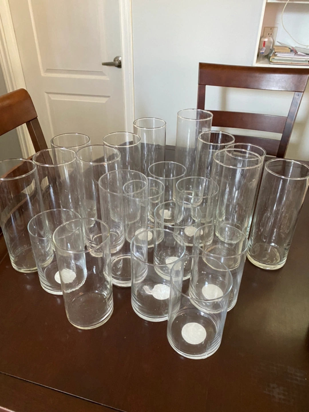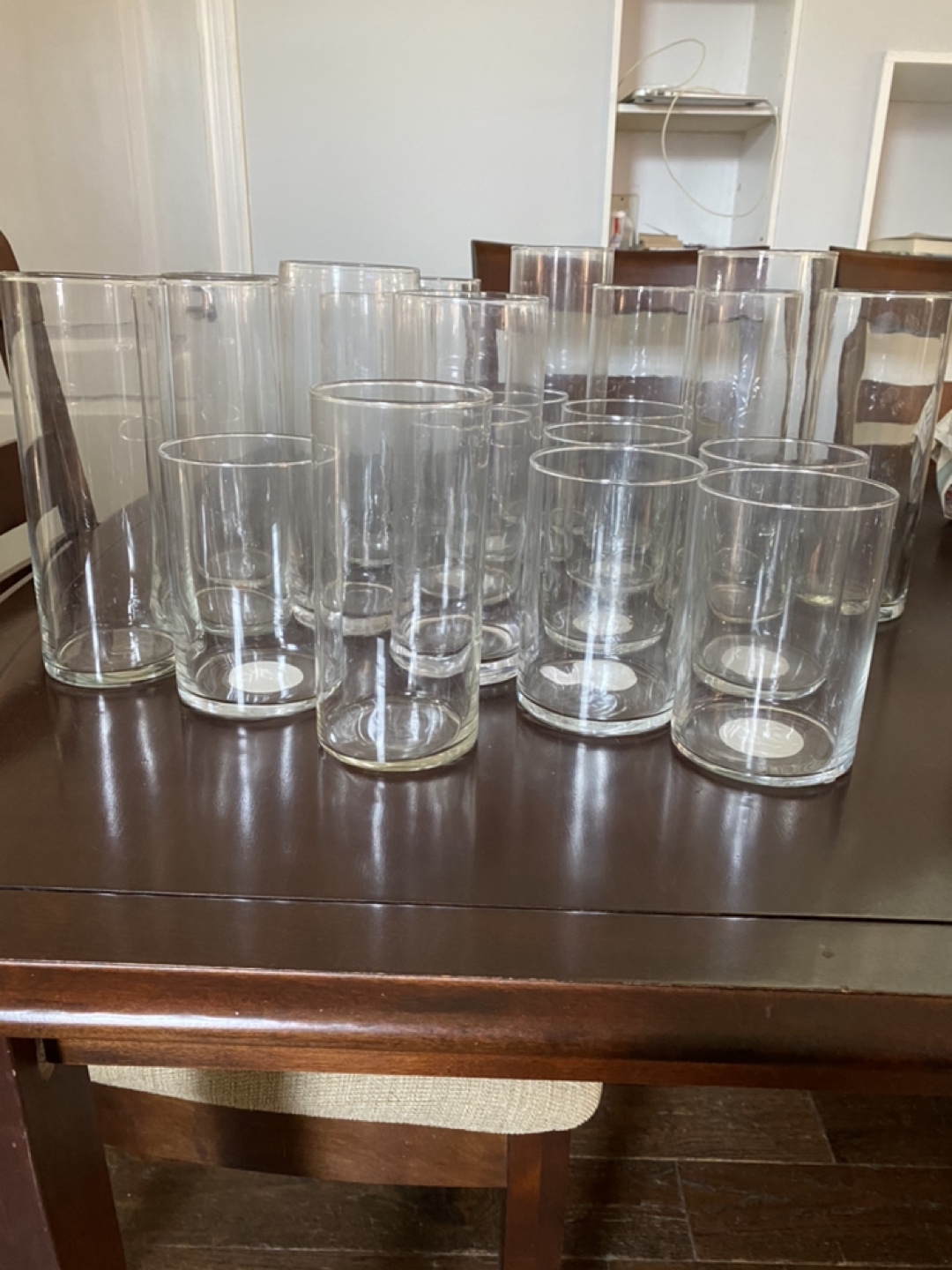 Tall and small glass jars. 13 tall and 7 small jars. @party decors @floating candle