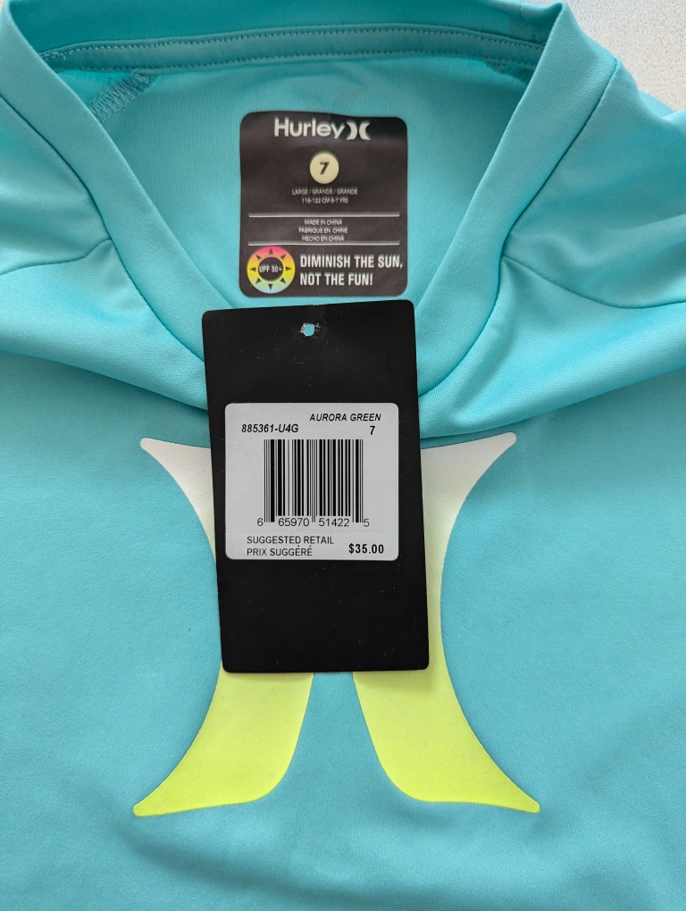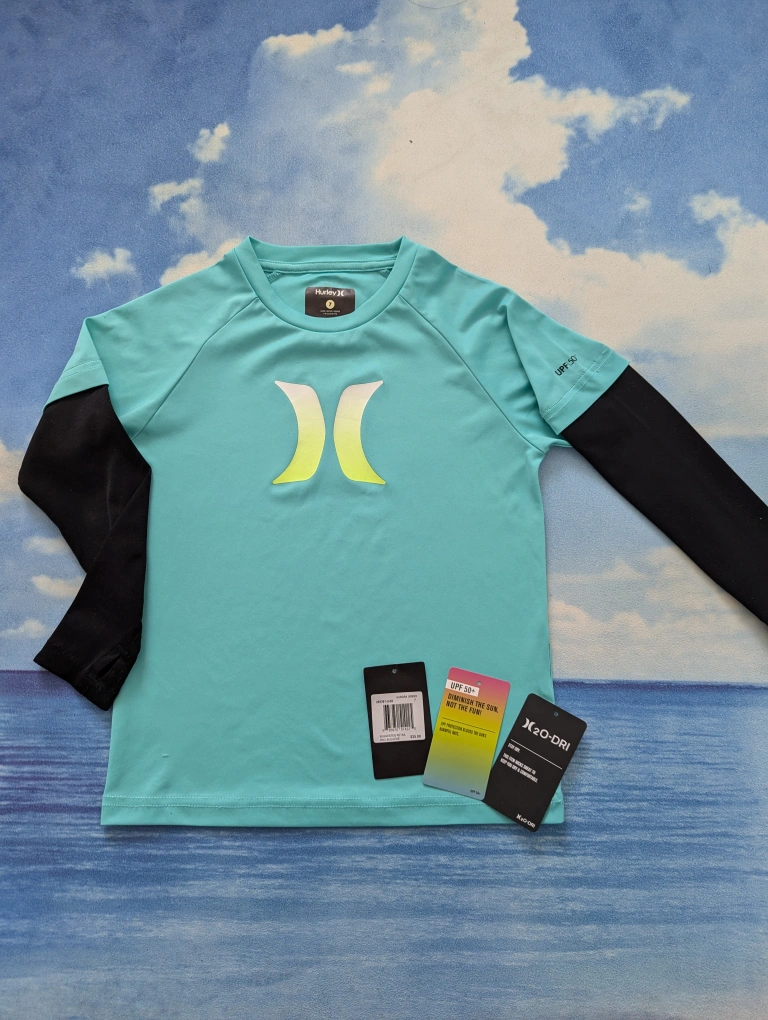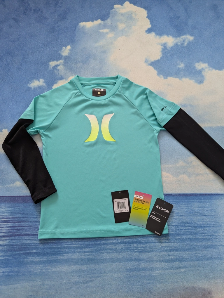 Hurley Boys UPF50+ shirt, full sun protection , no need to put sunscreen on wearing this, perfect for summer sports. H2o Dry material, quick dry. Thumb holes for sports. Retail $35+, very gentle used.