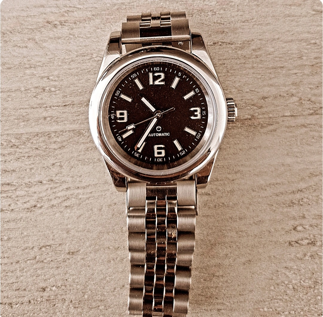 40mm Mod watch. Comes with an exhibition caseback to view the accurate Seiko NH38 automatic mechanical movement. Jubilee bracelet with solid endlinks and machined clasp and has a sapphire crystal. Asking $80.