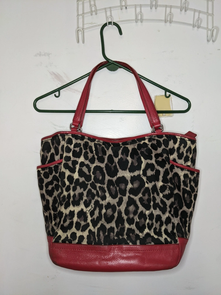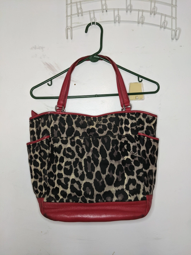 Coach Leopard Print Tote Shoulder Bag Purse Vintage Red Retro