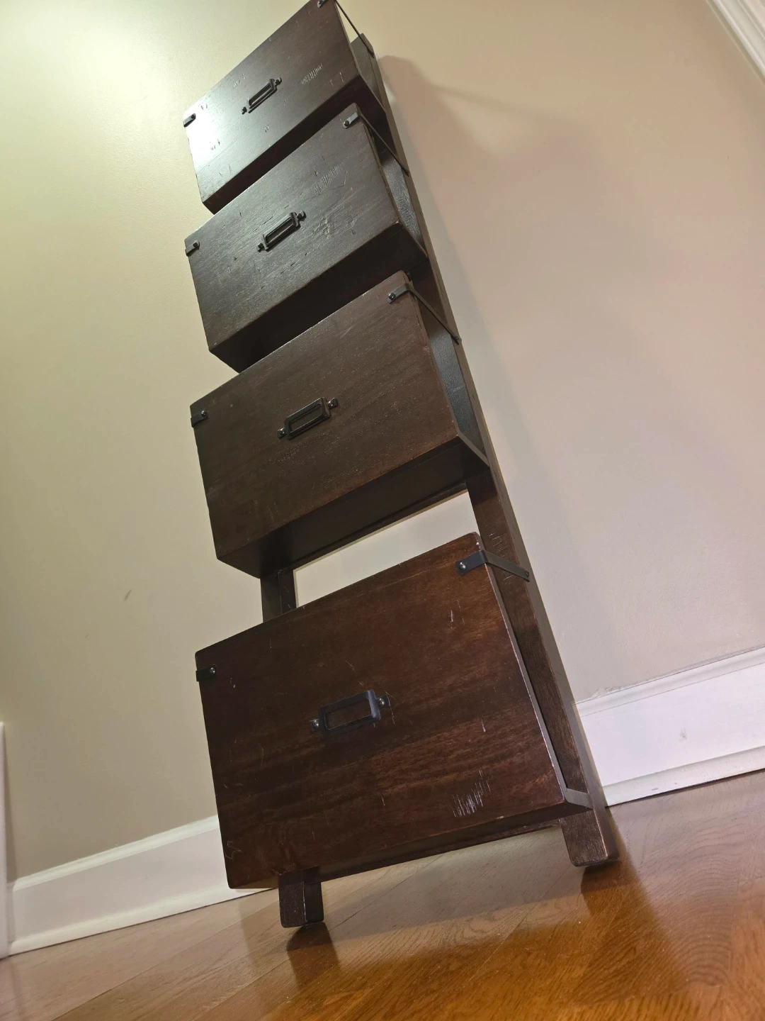 Dark Wood Leaning Ladder Shelf