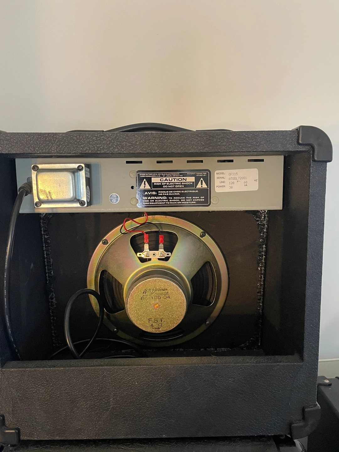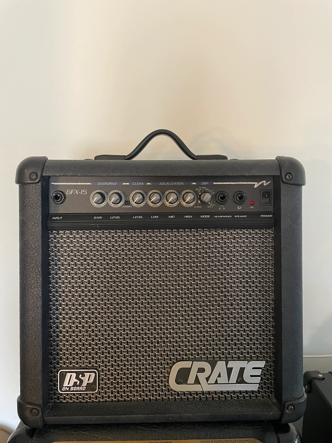 Crate GFX 15watt combo amp in excellent condition with DSP system on board ( multi effect… chorus, delay, flanger,reverb) and powerful distortion. Great for home studio and rehearsals.
