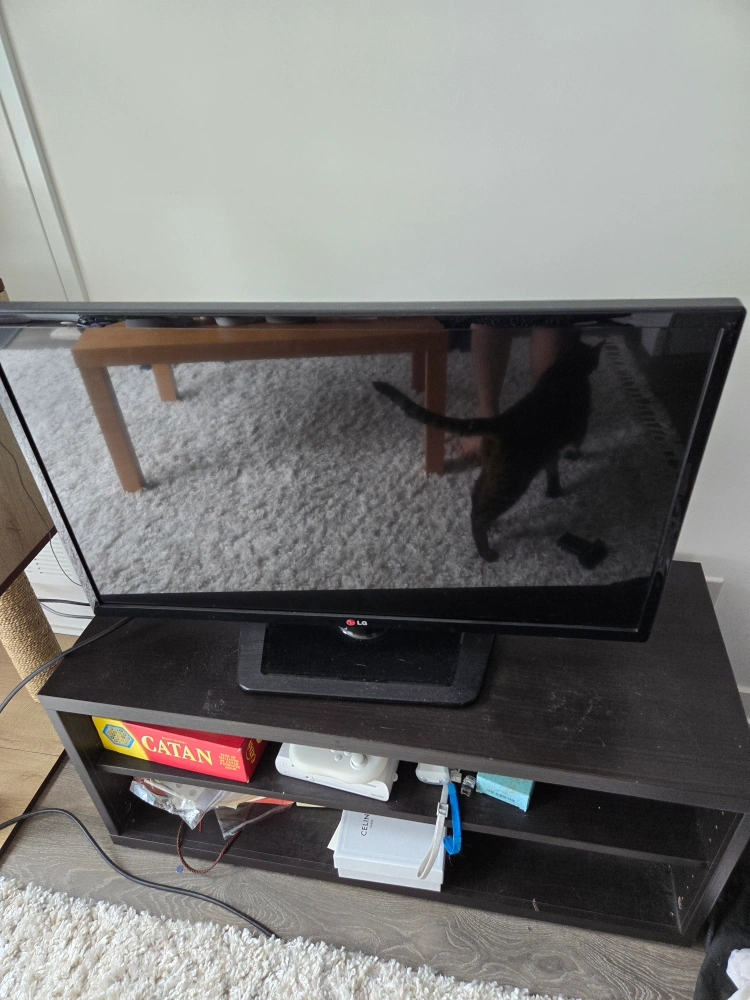 Used black TV stand and 32-inch LG TV for sale. TV is 2015 model and does not have Bluetooth/internet connection, but can connect to a computer (ie Netflix) via HDMI. Also doesnt have a remote. Does not include stuff in TV stand.
