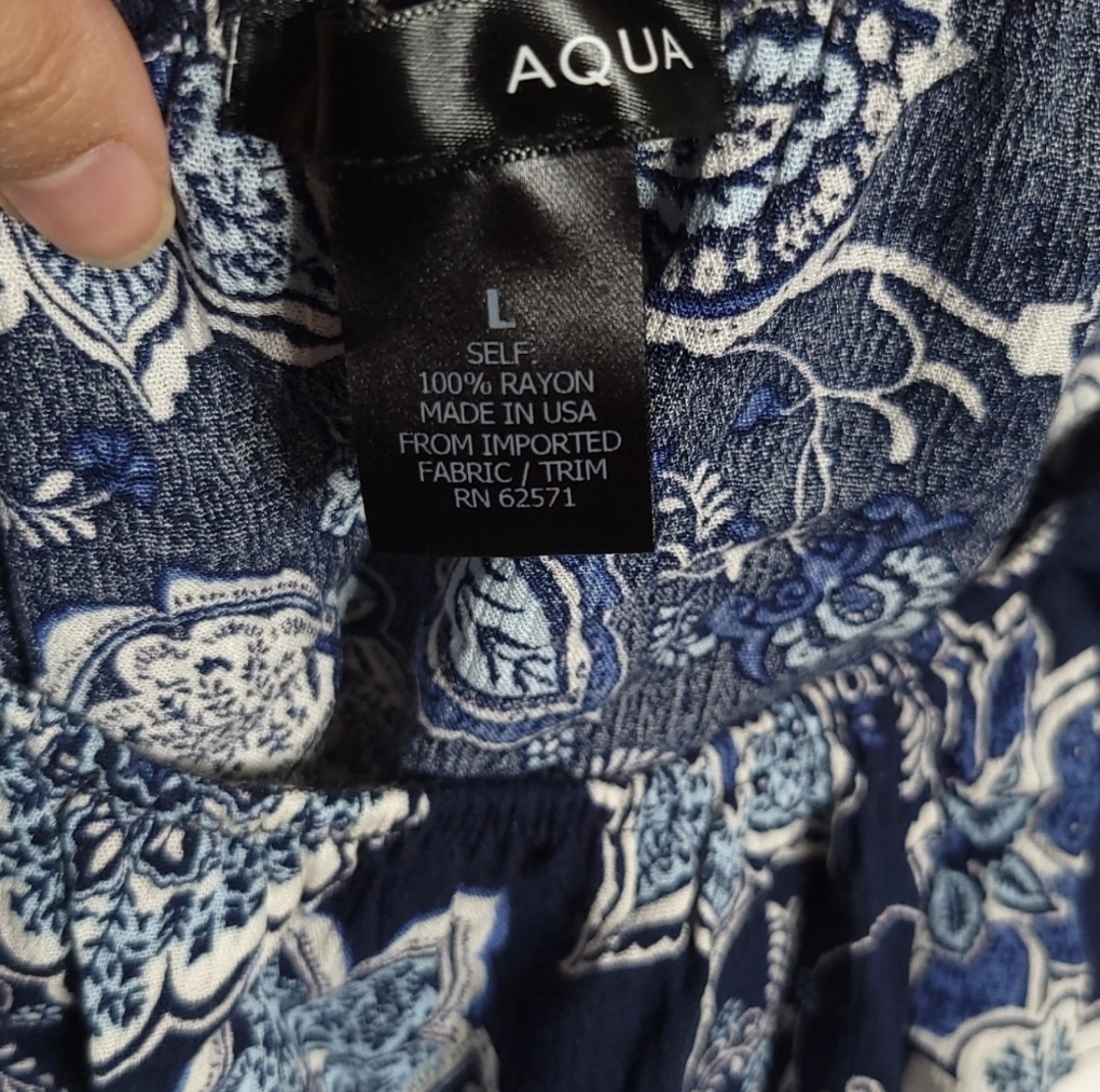 The size tag says L, but there's no way that's right. It fits more like an XS to S. For reference, the model is 5'2" with a 32E bust.