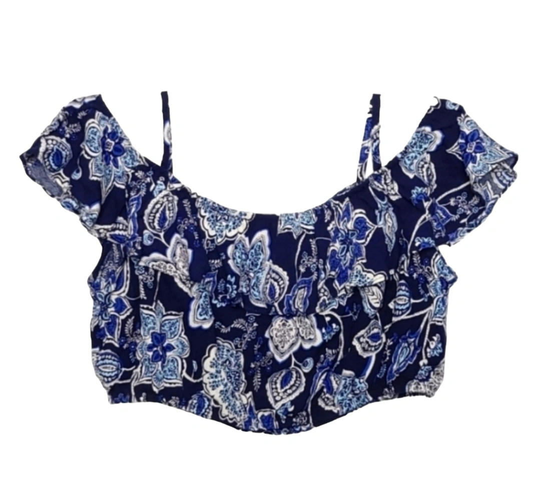 Aqua Off Shoulder Blue Crop Top with Ruffles
