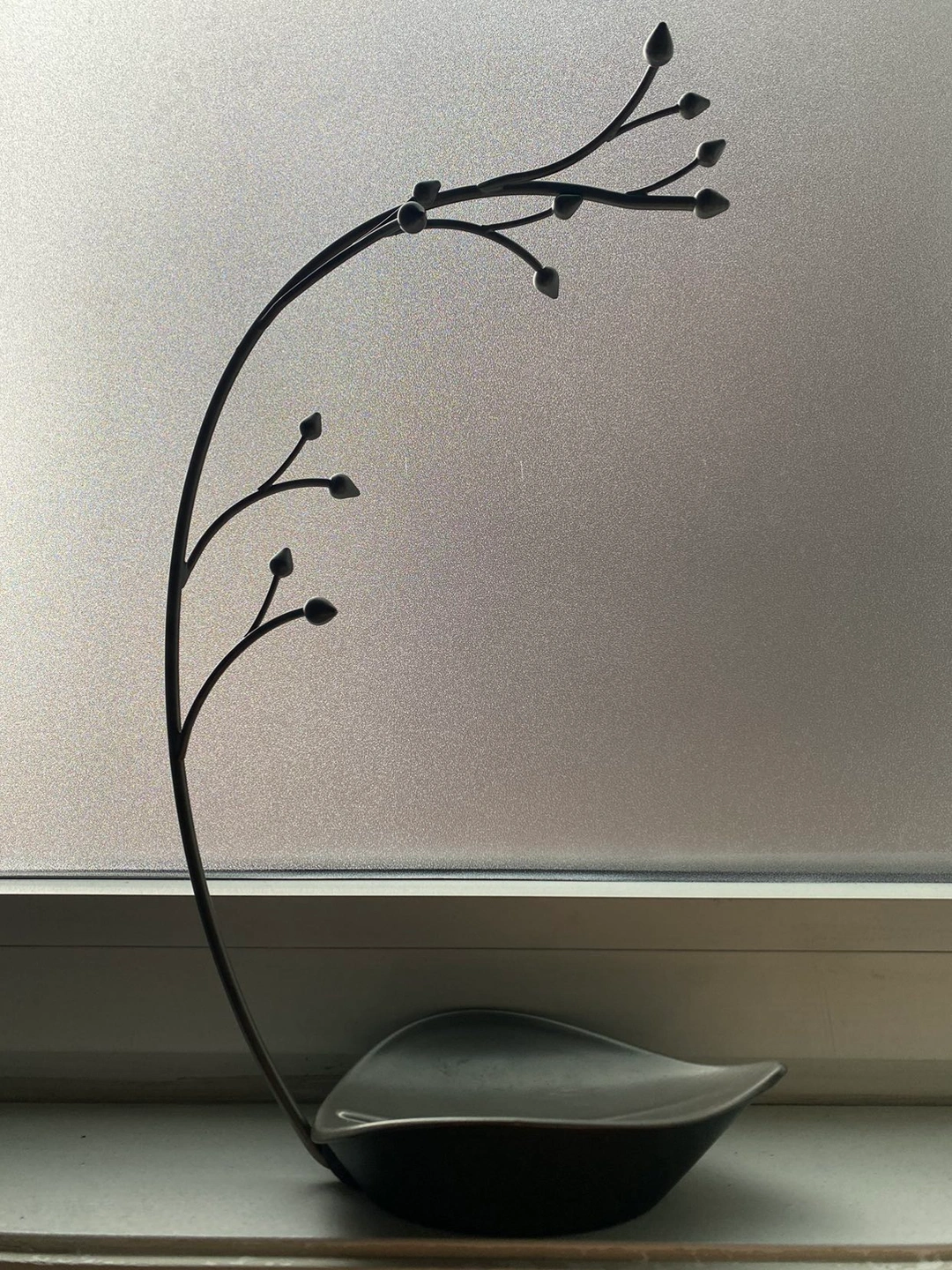 Decorative Jewelry Tree: Orchid is a metal jewelry stand and storage dish with 12 hooks for hanging items like necklaces and bracelets, its leaf-shaped dish is great for smaller pieces like rings and earrings