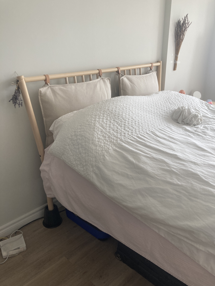 Very sturdy bed with plenty of storage space underneath. Pick up only. Can pair with silk and snow mattress.